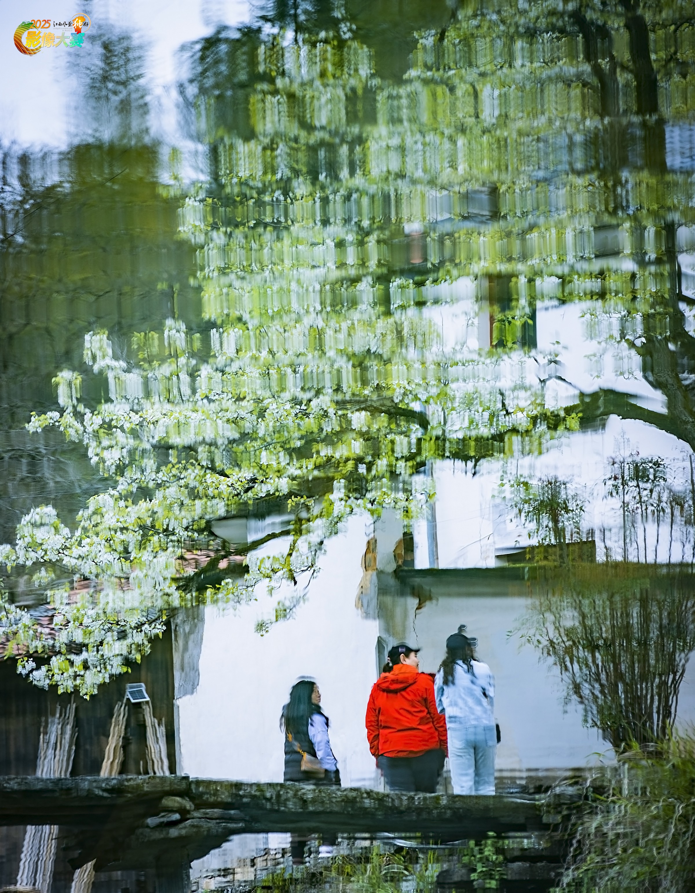 水中倒影映衬春讯。