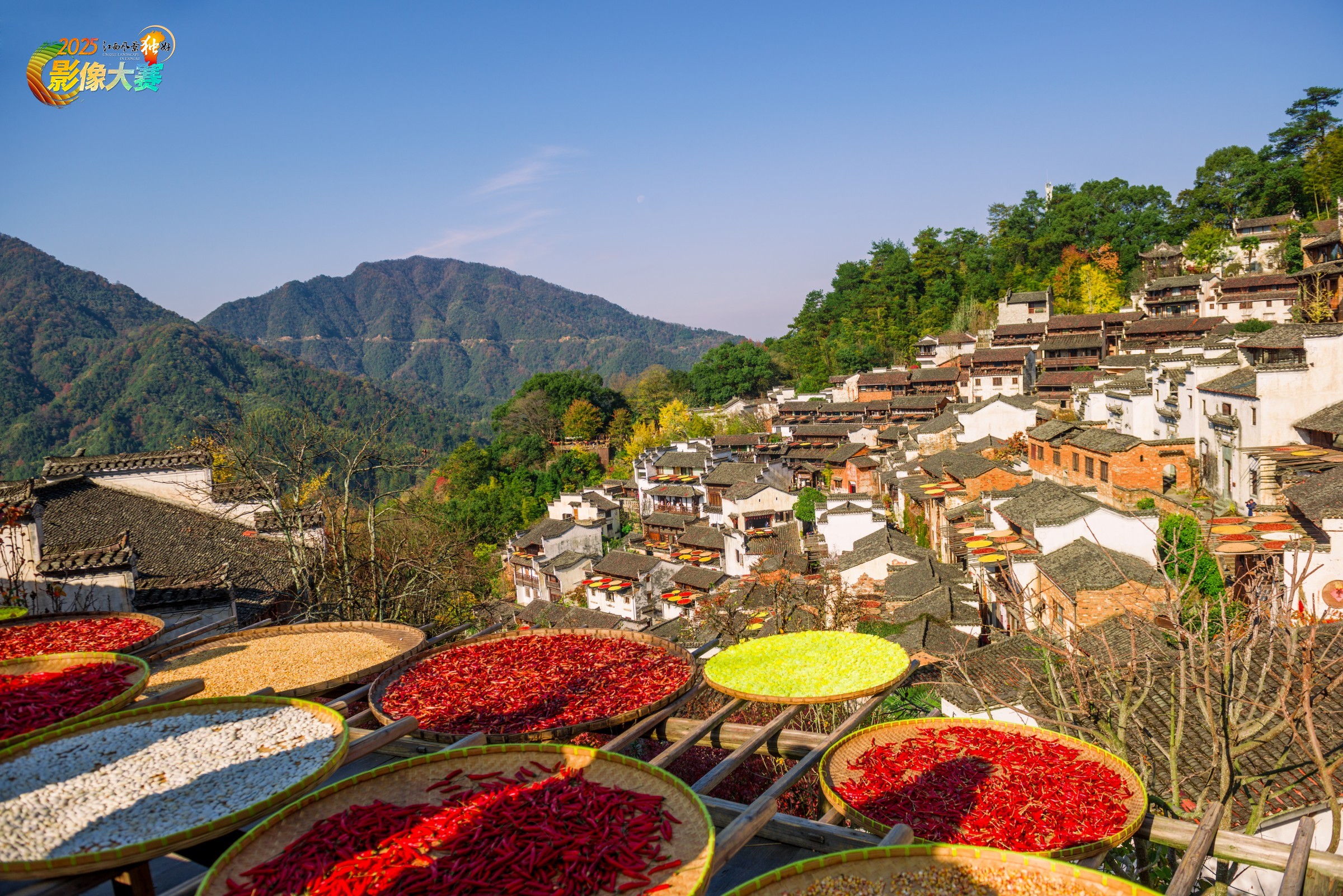 婺源篁岭晒秋人家鳞次栉比。
