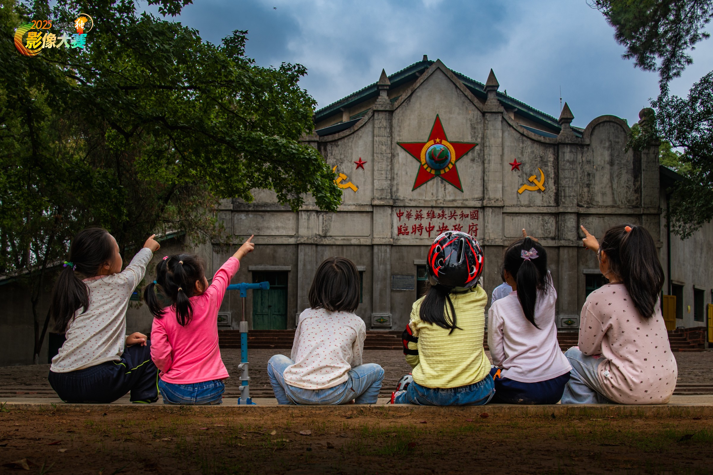瑞金苏维埃会址是红色教育基地,每年都有大量的人来这里接受红色教育。图为瑞金当地小朋友在会址前,进行红色传统教育。