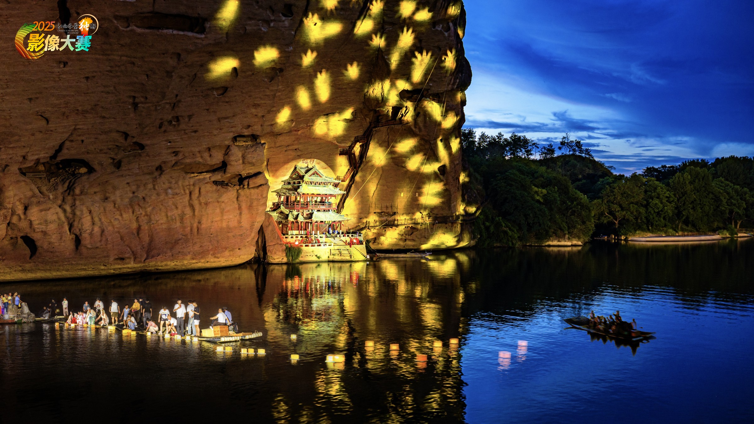龙虎山仙水岩飞云阁在七夕时放河灯