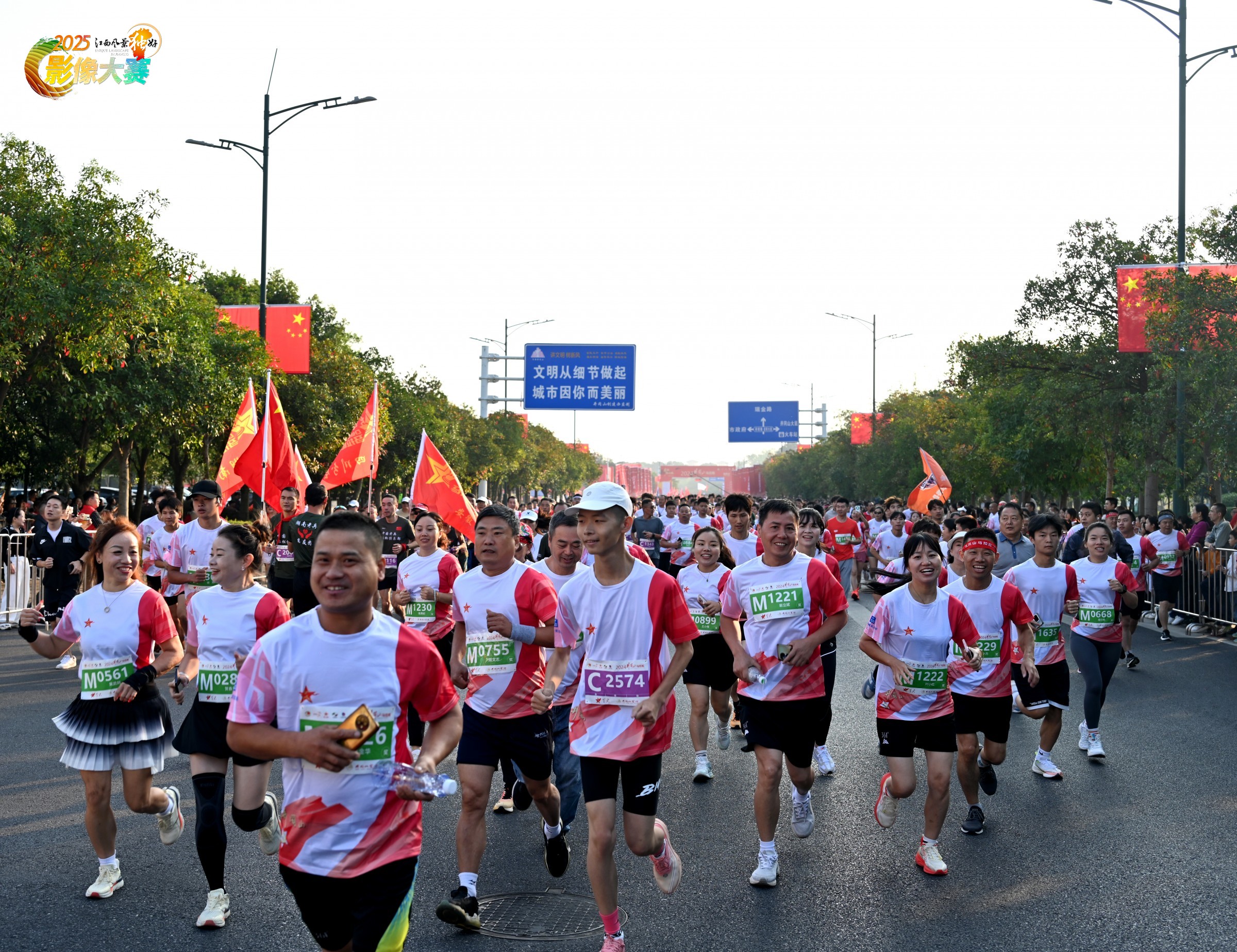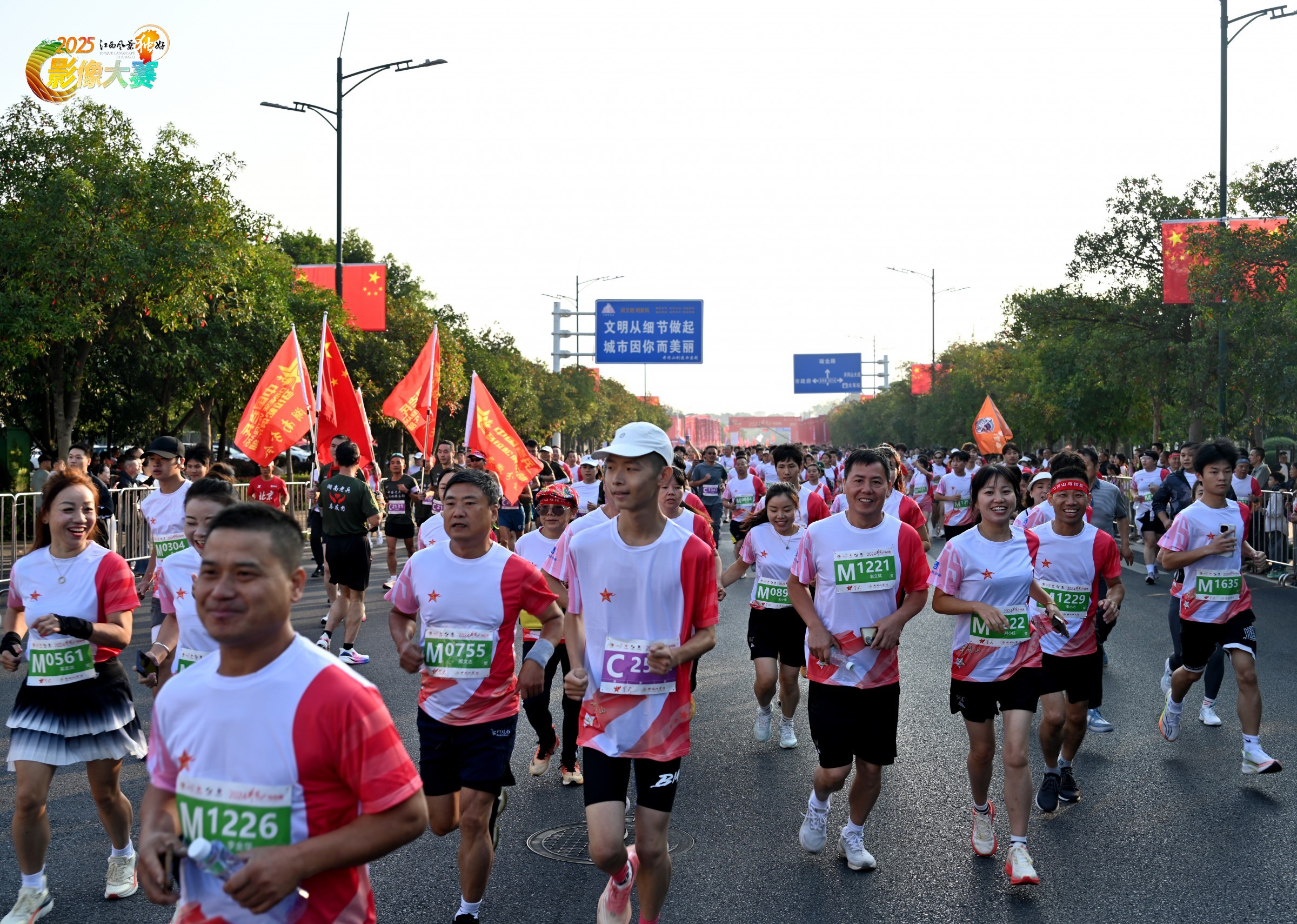 组照拍摄于2025年10月13日,画面聚焦马拉松赛事里人群畅跑的瞬间,红白队服如跳跃的色块,红旗在旁热烈挥舞,“文明从细节做起”的标语与飘扬的国旗衬出氛围。人们脸上洋溢的笑意、跑动的姿态,既展现出全民运动的蓬勃活力,又传递出一种幸福满溢、向美好奔涌的生活质感。