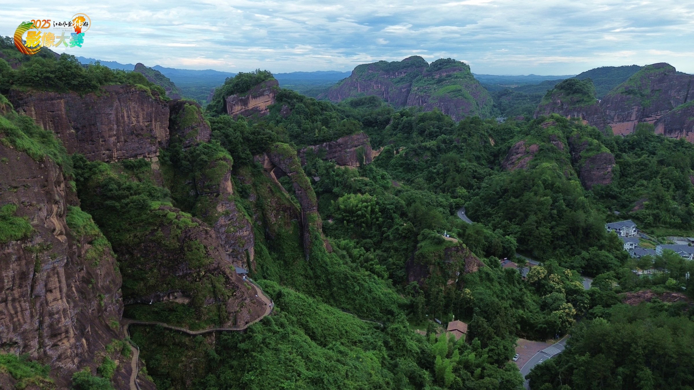 该作品拍摄于2025年6月14日江西龙虎山象鼻山的核心景观。 1. “丹崖”:精准对应龙虎山象鼻山的丹霞地貌特质,点明其赤壁红崖的地质底色; 2. “灵象”:既突出景观核心——形似巨象的象形石峰,又赋予其“灵性暗蕴”的意境,契合龙虎山作为道教名山的文化气质。