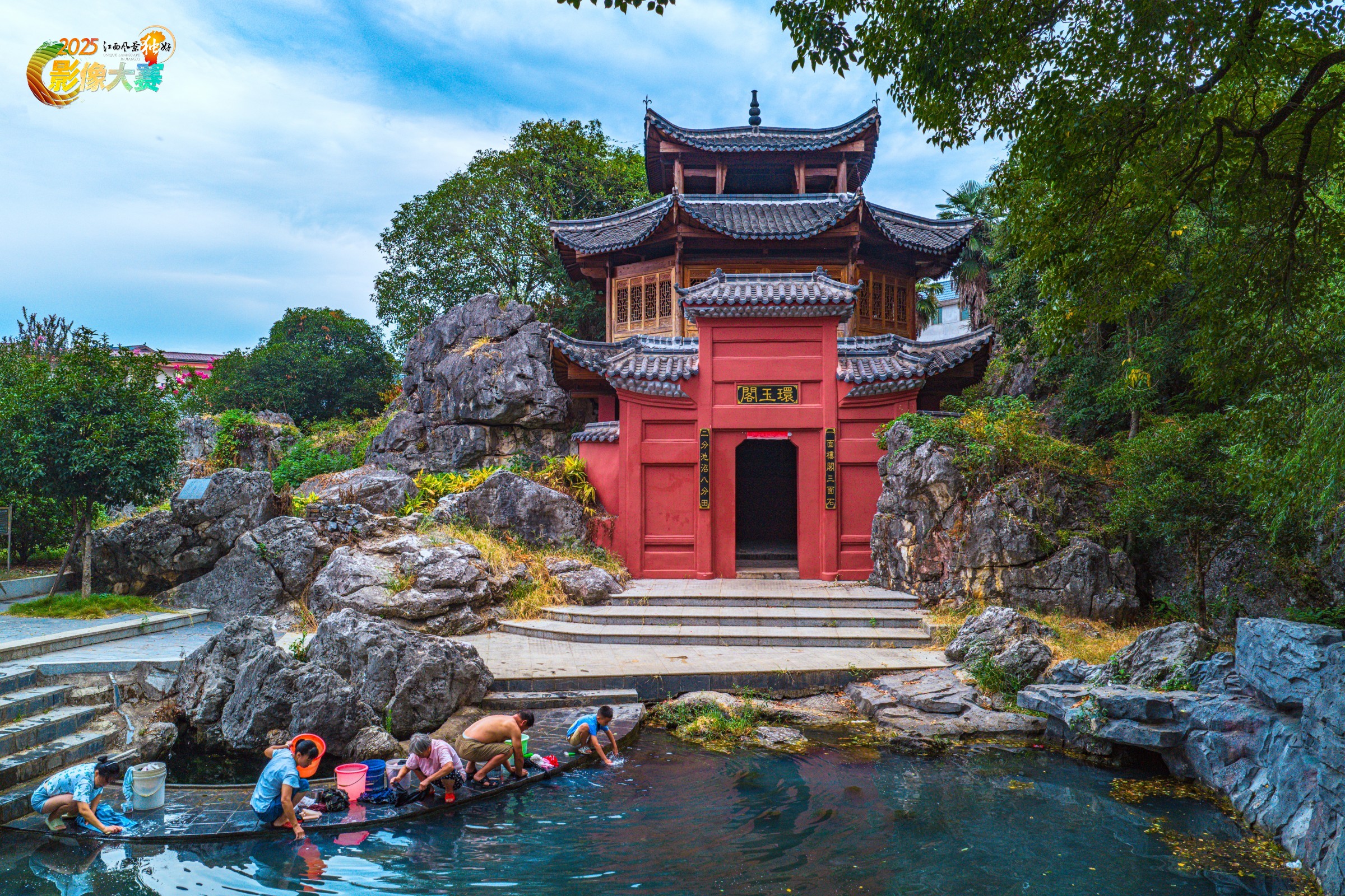江西省吉安市峡江县水边镇何君村村民们在千年环玉阁边洗衣服的温馨画面。
