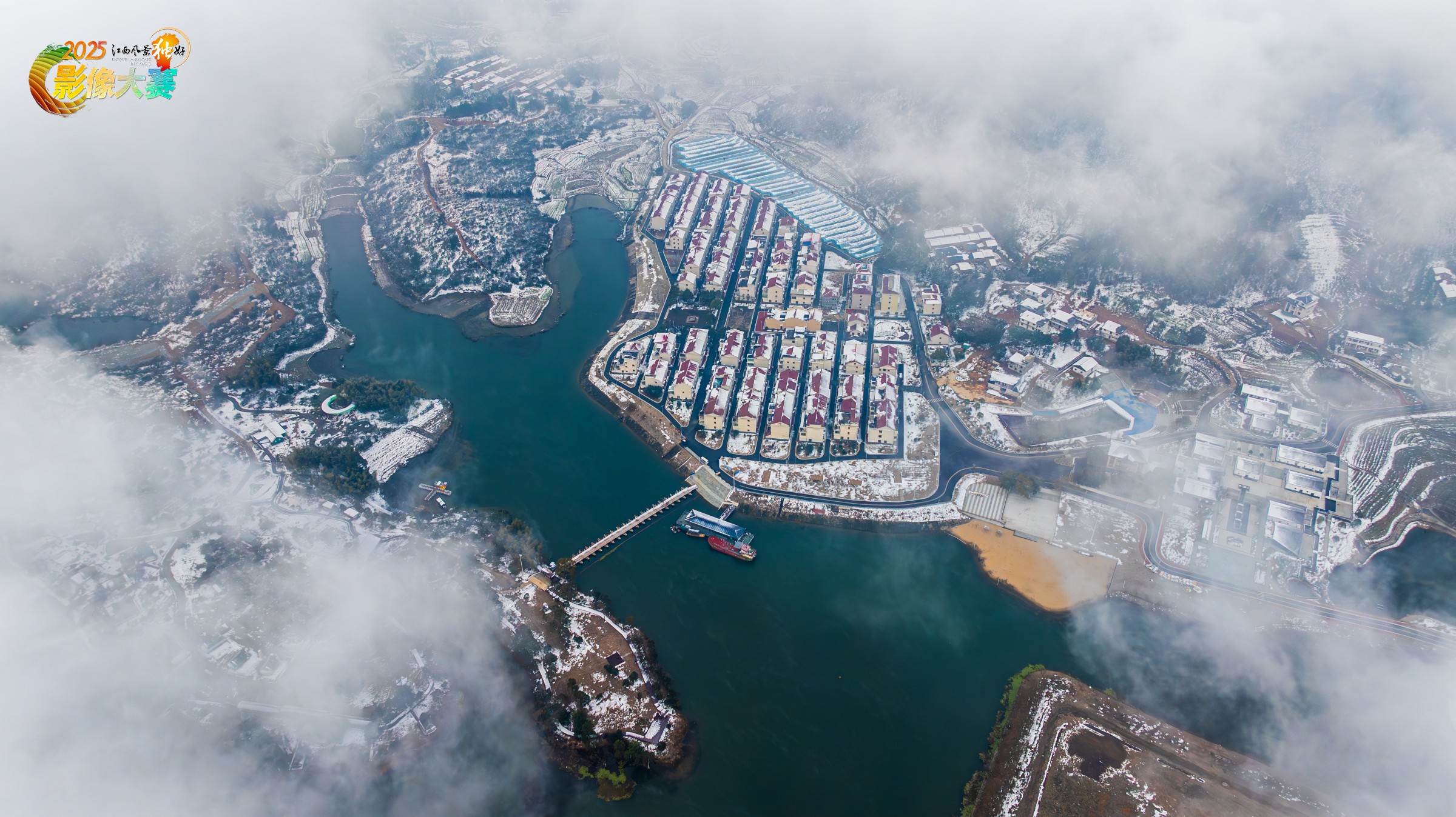 江西省吉安市峡江县巴邱镇蒋沙渔村雪景云海风光