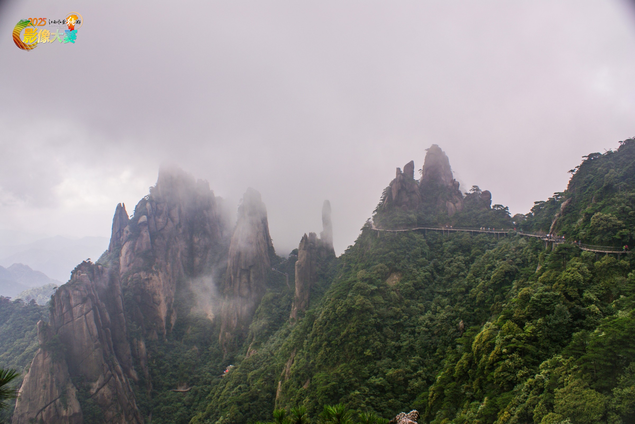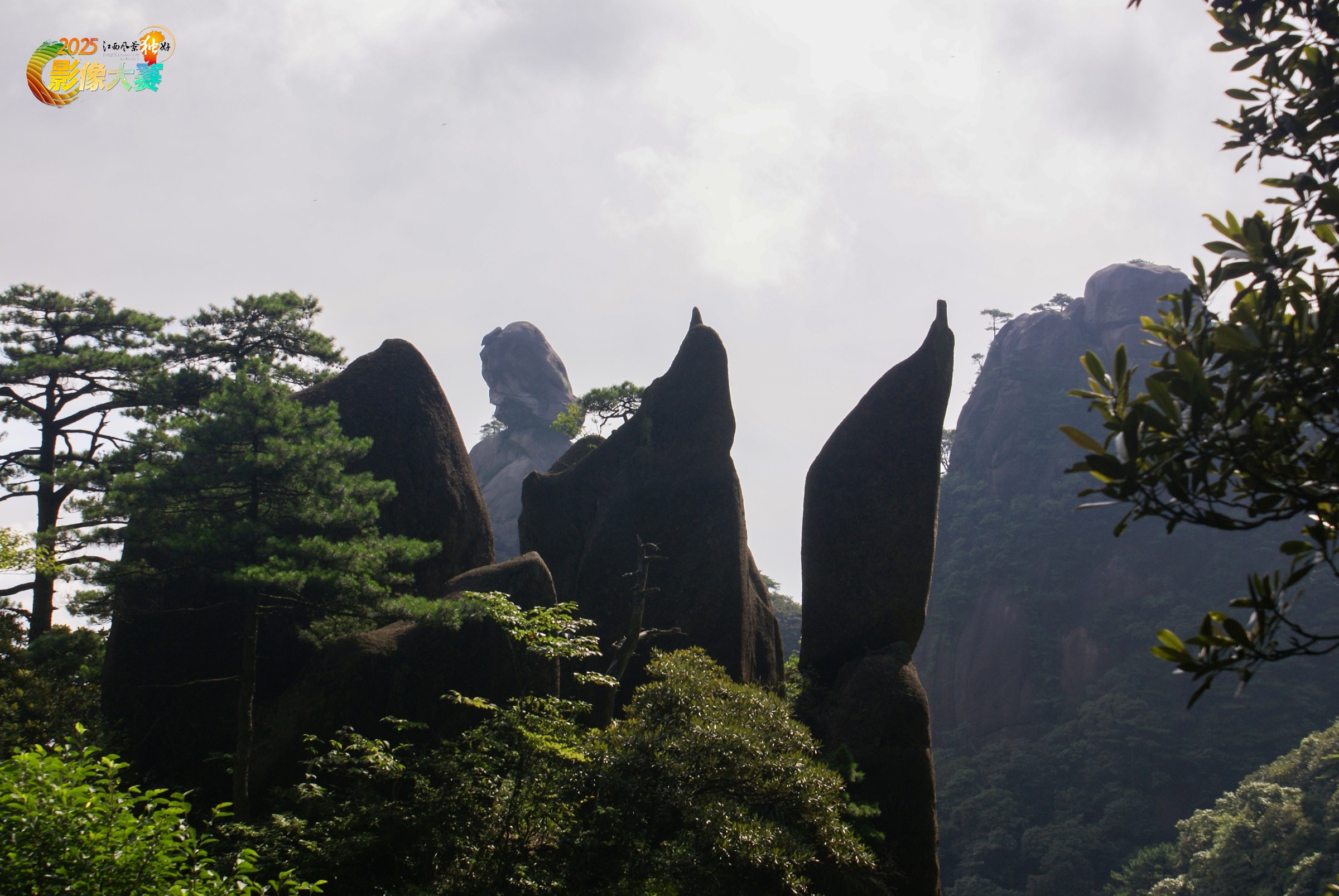 三清山的巨蟒峰、企鹅献桃等景点,惟妙惟肖、栩栩如生。花岗岩的刚硬与树木的柔美的完美结合,造就了一幅幅优美的画卷。