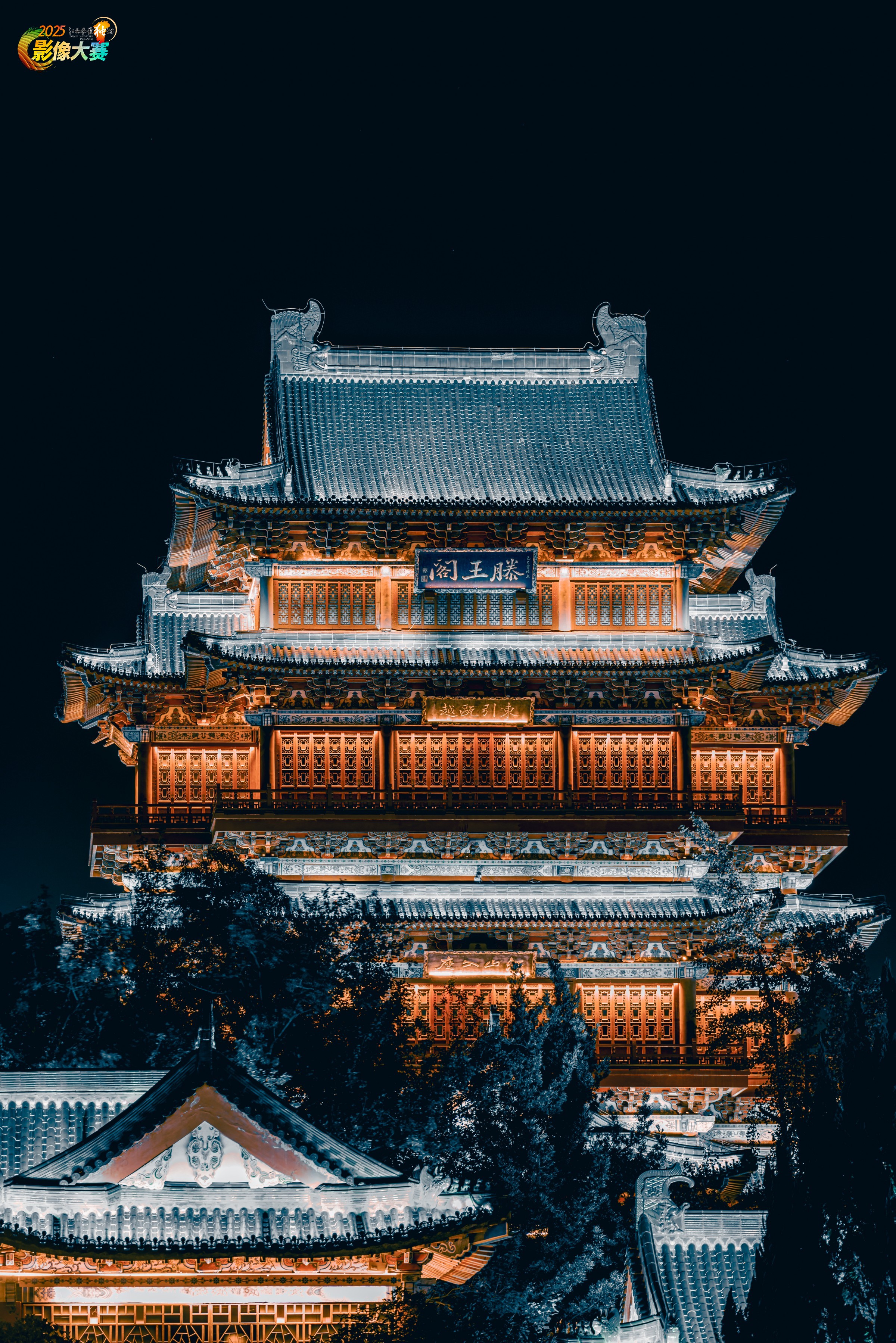 夜景下的滕王阁熠熠生辉,通过调色,冷暖对比突出滕王阁的魅力