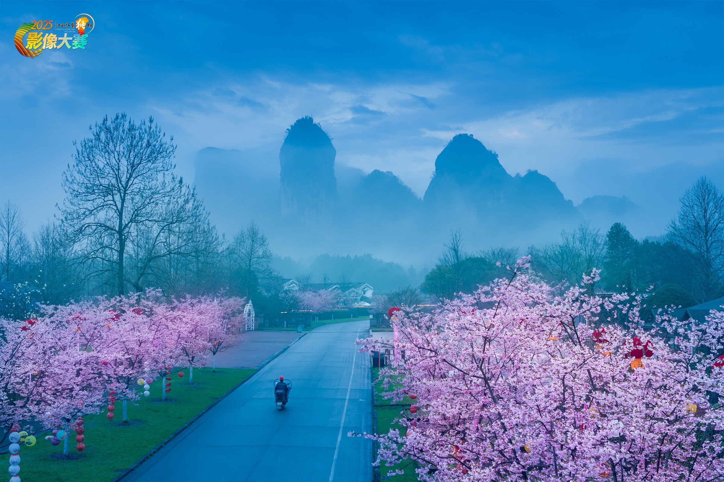 每年春天龙虎山的樱花绚烂绽放,远处的云雾袅绕的龙头岭,将自然山水的灵秀与春日繁花的柔美交融.