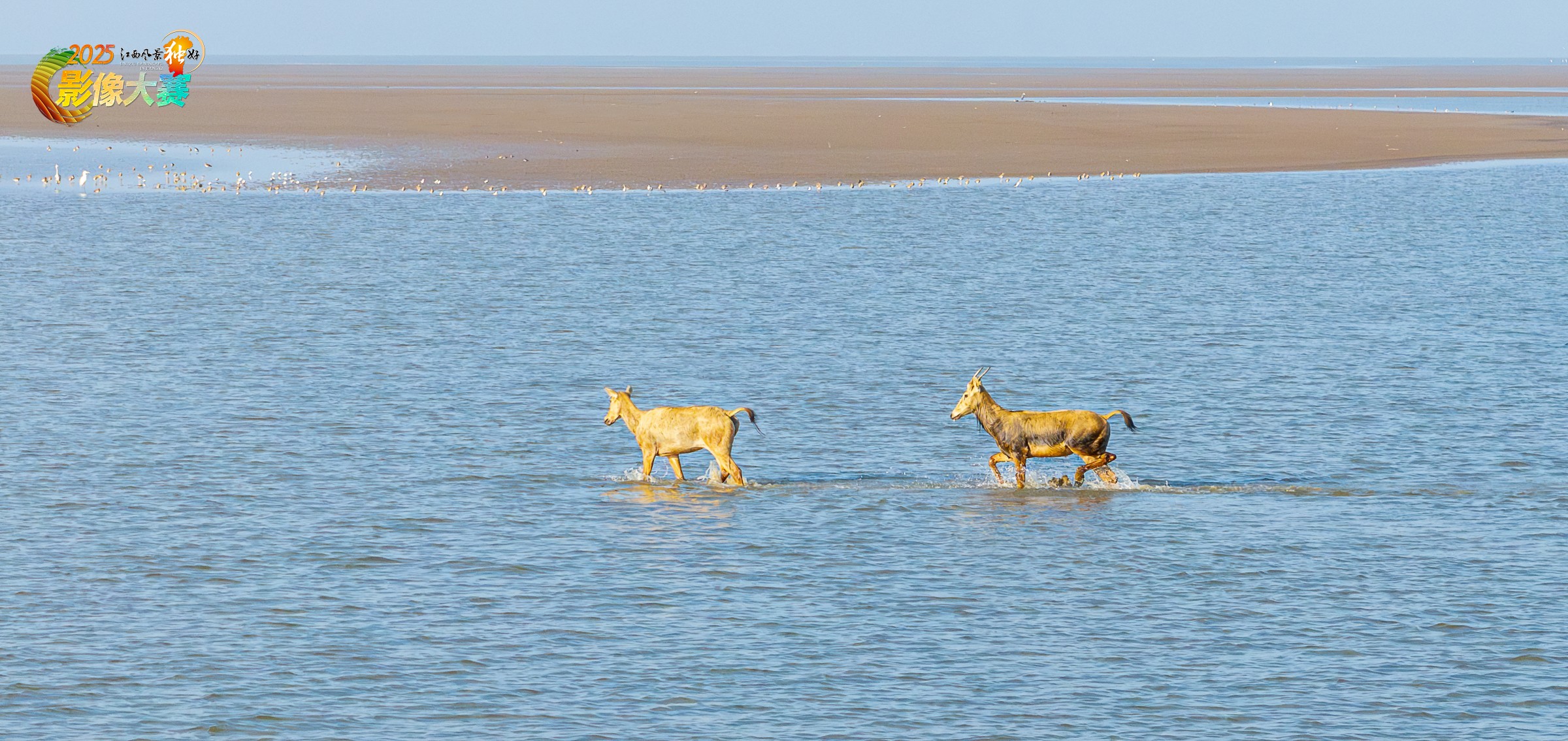 九江都昌县南峰镇鄱阳湖湿地,麋鹿静享自然之美。