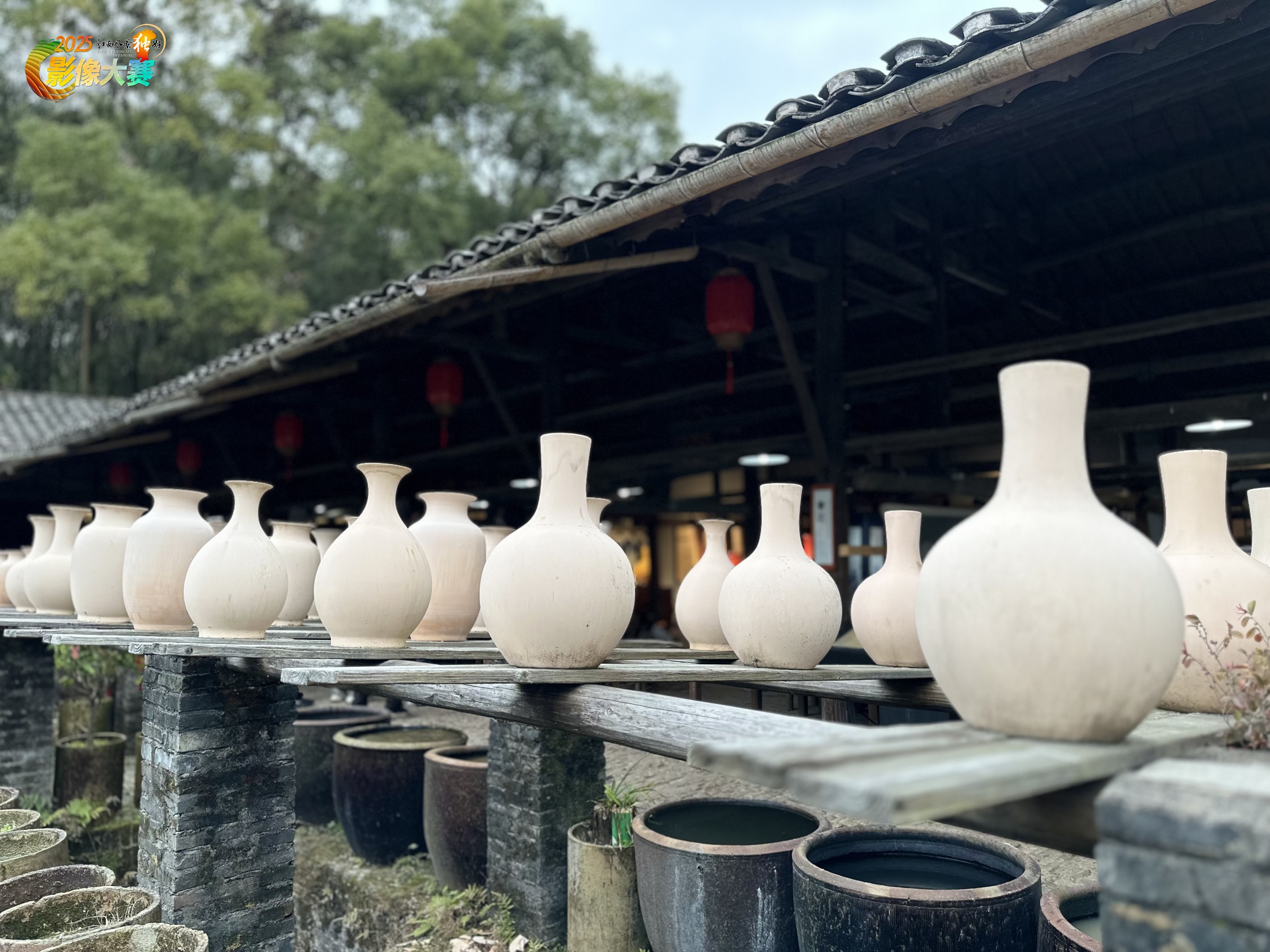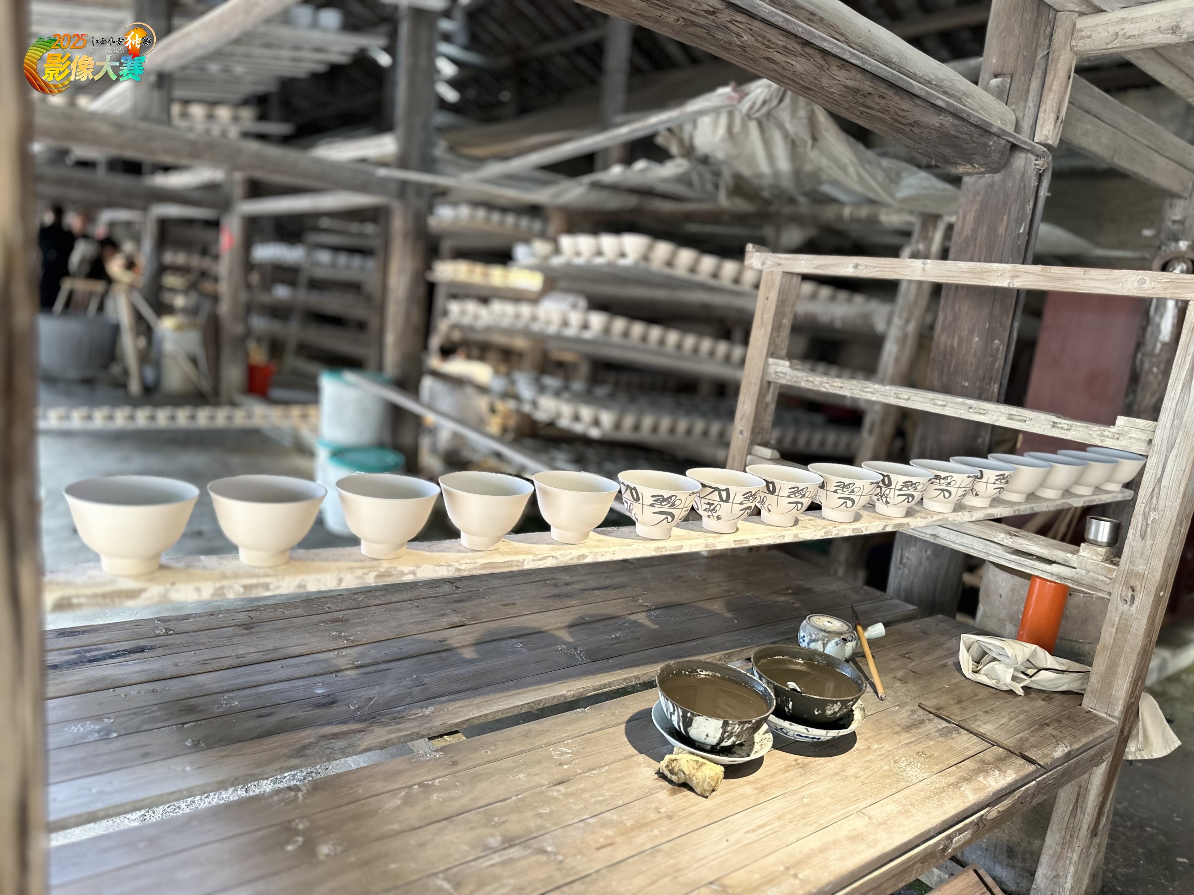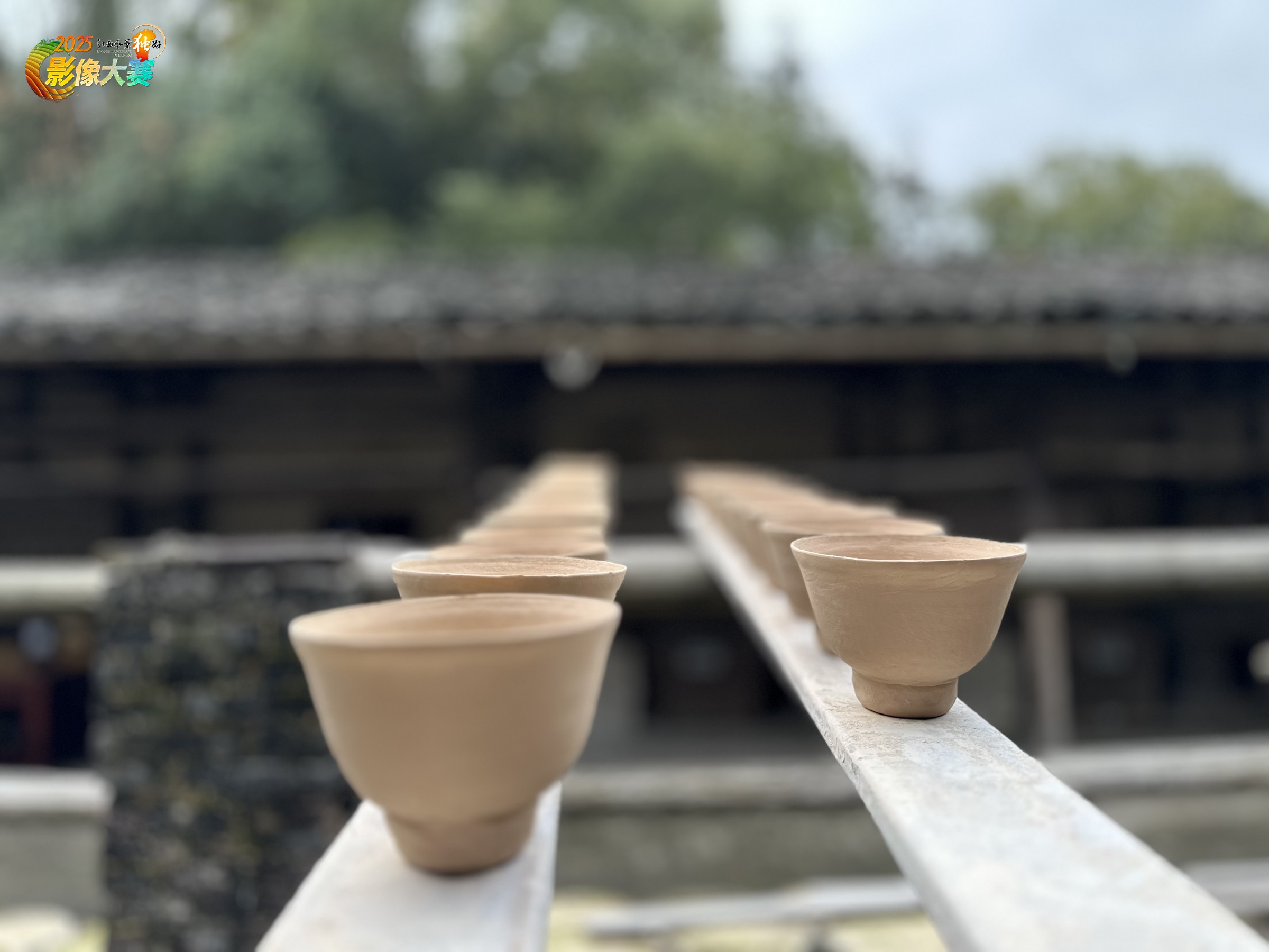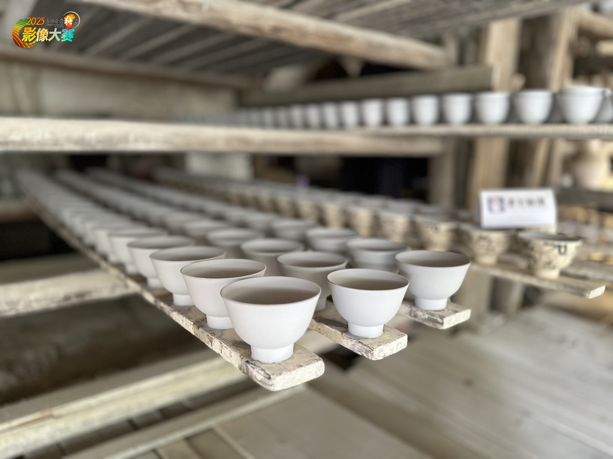 作品名称:《素泥凝韵:窑前的时光诗》 未经烧制的陶坯如一个个待启的梦,在木质架上、在古意盎然的作坊空间里舒展形态。素坯里藏着泥土的呼吸与匠人的巧思,这是陶瓷艺术诞生前的静默时刻,是泥土在成为器皿前的诗意停留,记录着传统制陶流程里的一份从容,也让观者窥见那些即将在窑火中涅槃的陶品,是如何在时光与匠心的打磨下,从混沌泥土走向艺术载体的伊始。