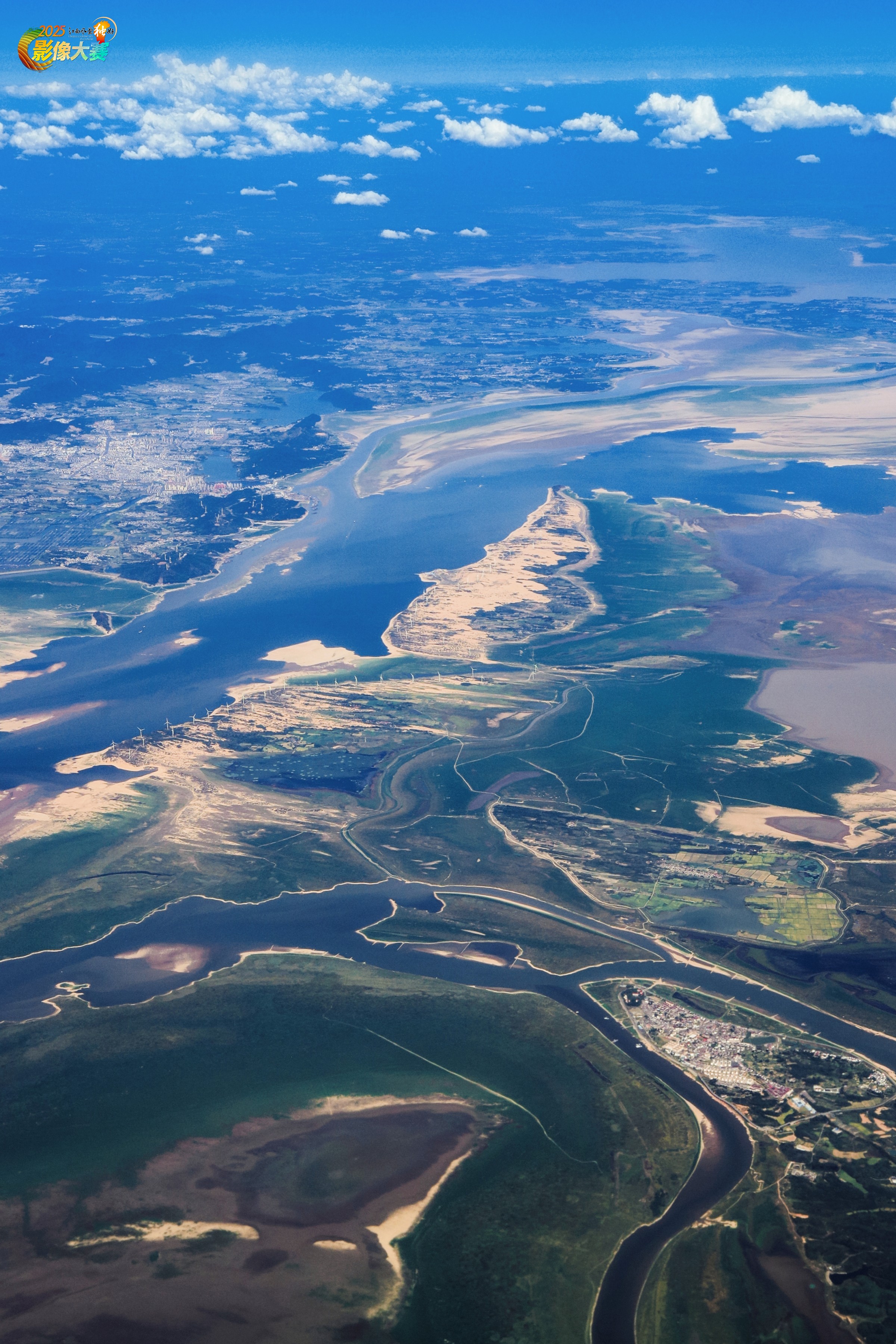 高空之上俯瞰鄱阳湖,感受自然绘画板的魅力。