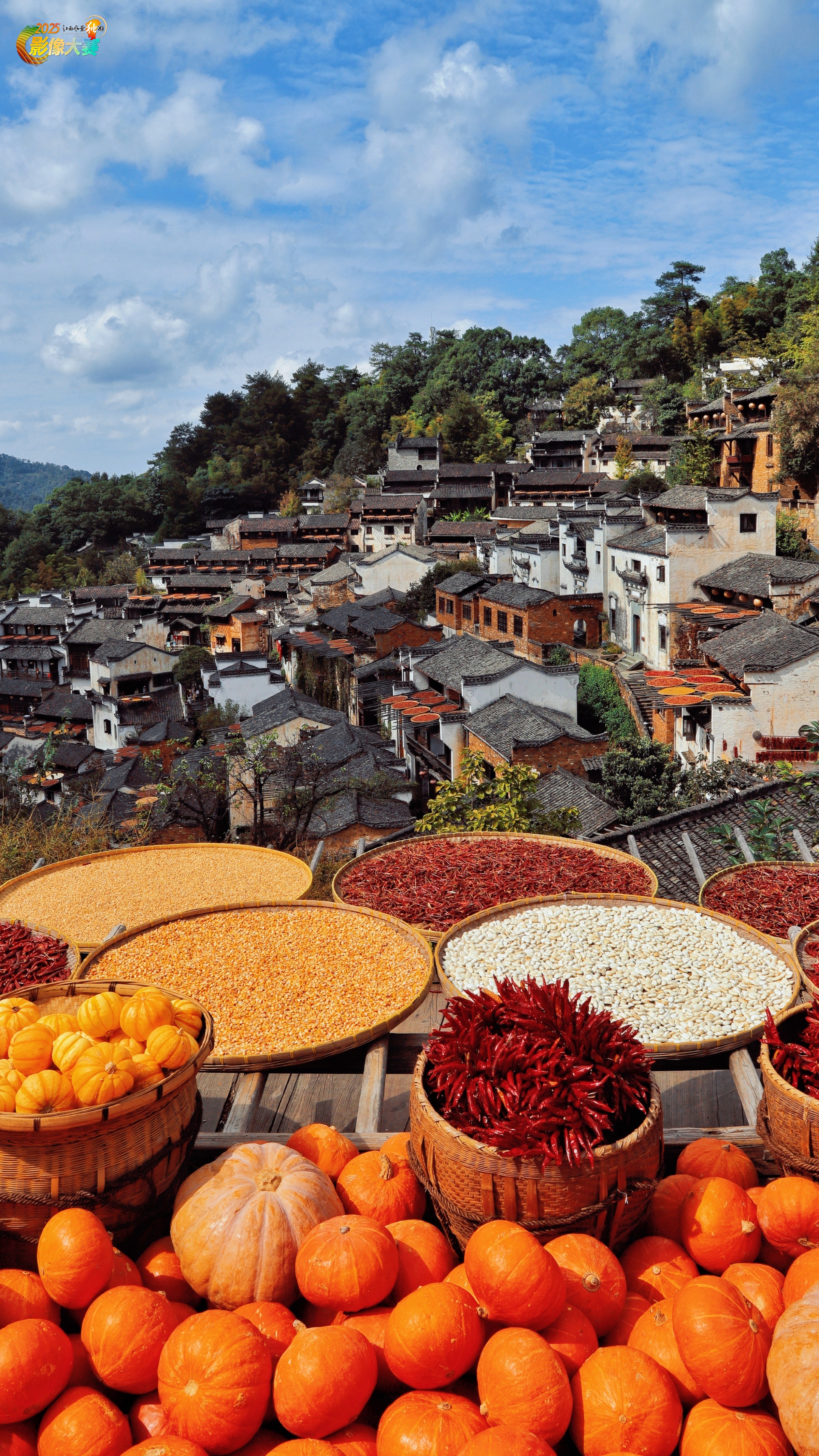 婺源篁岭的晒秋美景,江西特色建筑与人文的结合。