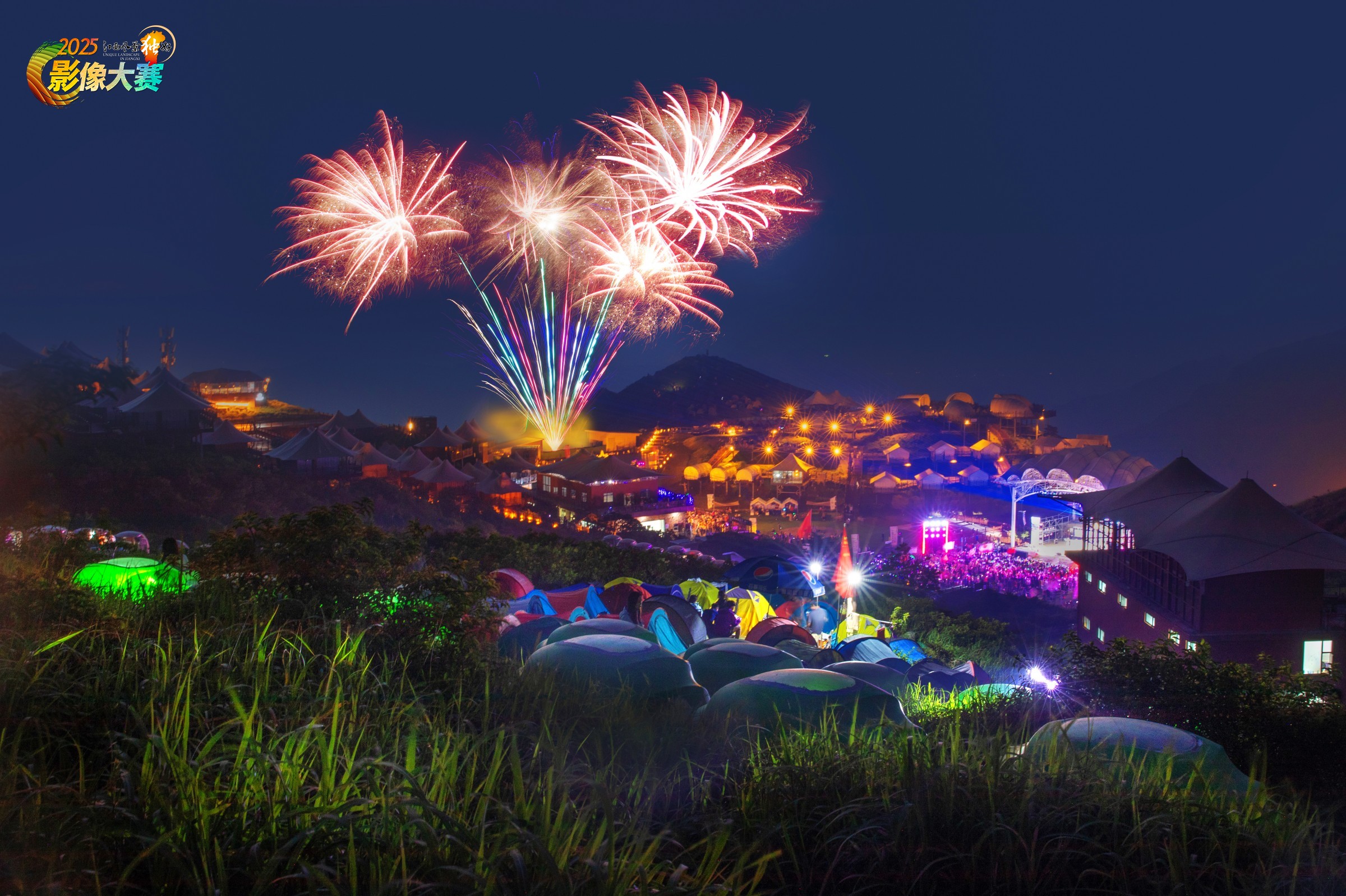武功山夜景被烟火点亮的独特的美