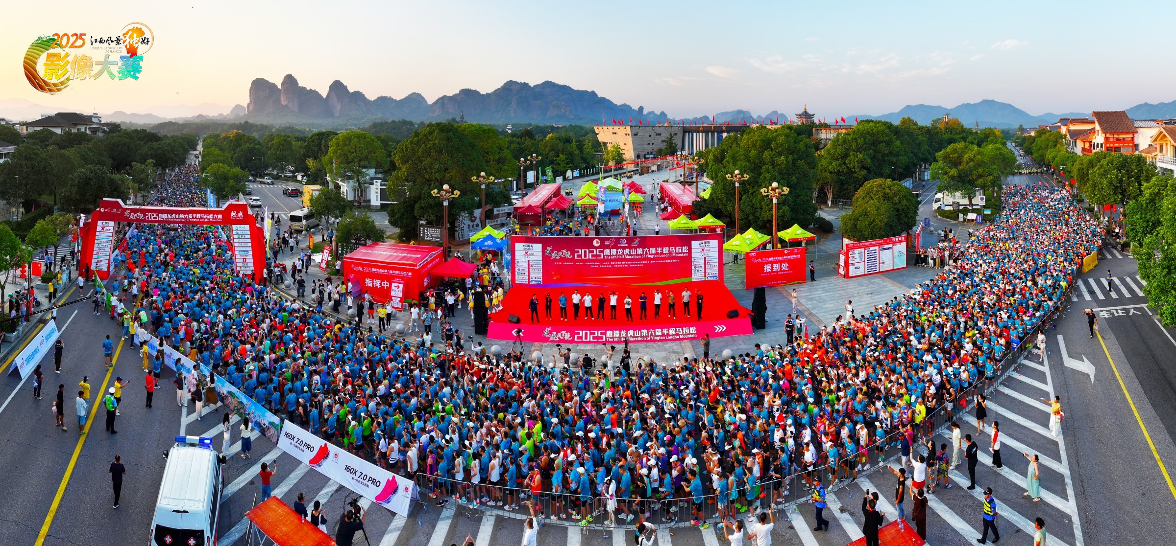 在江西鹰潭龙虎山的晨光里,第六届半程马拉松赛的起点区域人声鼎沸。近万名跑者身着缤纷运动装,如彩色浪潮般汇聚在红色起点拱门前。 龙虎山标志性的丹霞山峰在晨曦中勾勒出雄浑轮廓,与赛道旁的绿树、古意建筑相映成趣,将自然奇观与体育激情巧妙融合。