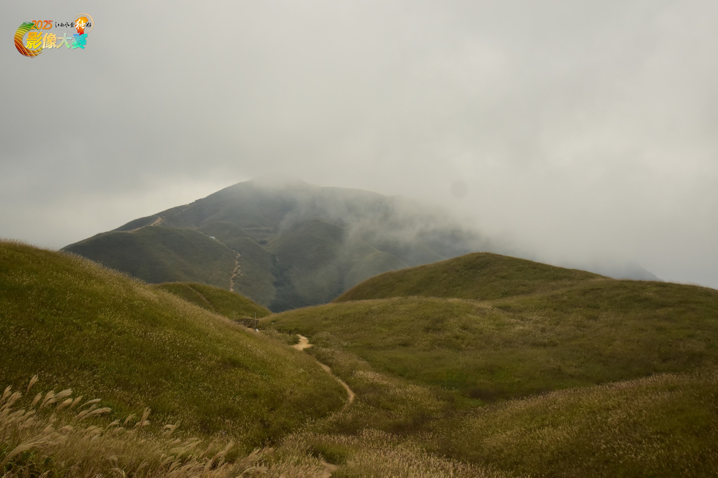 武功山草甸,是大地写给天空的一封绿色情书。它用最柔软的草叶,编织成最浪漫的画卷,在云雾缭绕间,诉说着大自然的温柔与诗意,而攀登者前进的道路犹如大地的斑纹一般与草甸交相呼应。