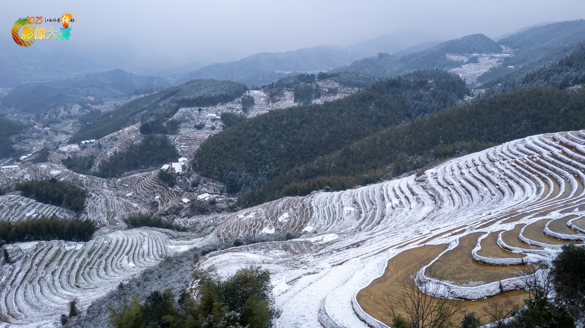 2024年初,一场难得一遇的春雪洋洋洒洒飘落,天空为山野盖上了冬日的绒毯,让起伏的大地安然入梦。这一刻,寒冷被温柔治愈,喧嚣被寂静收纳。梯田固有的优美曲线在白雪的覆盖下若隐若现,成为绒毯上最自然的“纹理”。