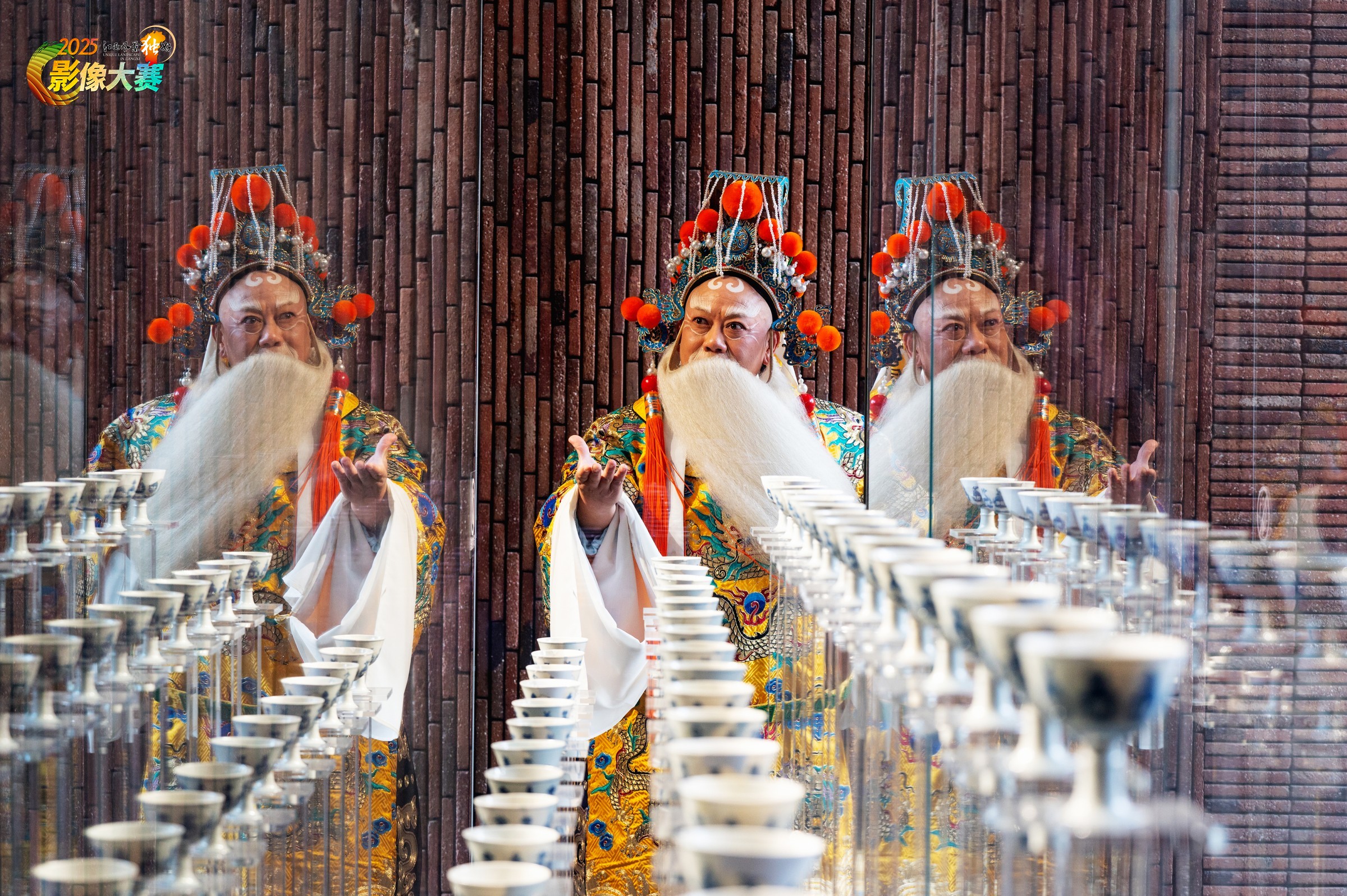 2025年10月18日,一年一度的瓷博会在景德镇举行,为助兴瓷博会,由乐平市赣剧团携手英国东伦敦莎士比亚艺术剧团联合创排的中英合演版《李迩王》,在景德镇御窑博物馆的户外剧场精彩上演。御窑博物馆精美的瓷器收藏品,吸引了演员们的目光。赣剧《李迩王》的主演胡国栋老师在走过高足杯展柜前,情不自禁的拉开了架式,来了一个造型。赣剧戏曲服饰的精美与瓷器展品的雅致完美结合,传统戏曲与陶瓷文化融合,传递出浓厚的文化韵味 。