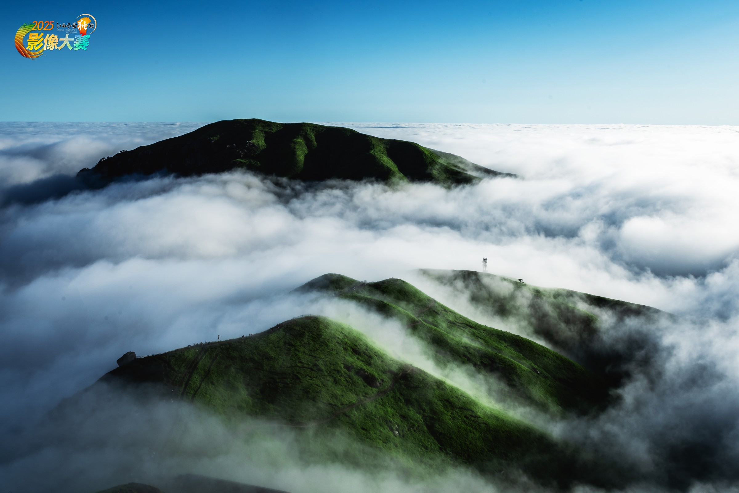 春天,武功山披上了赏心悦目的绿色,云海在风的驱使下漫过高山,犹如拂过一张天然的绿毯。