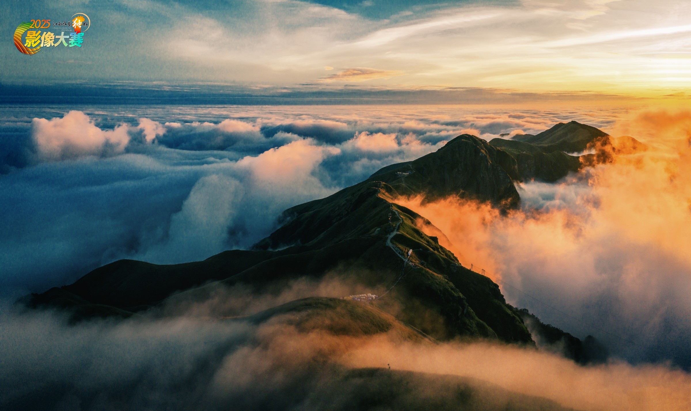 这是黄昏时武功山的景色,好似一半是火焰一半是海水。