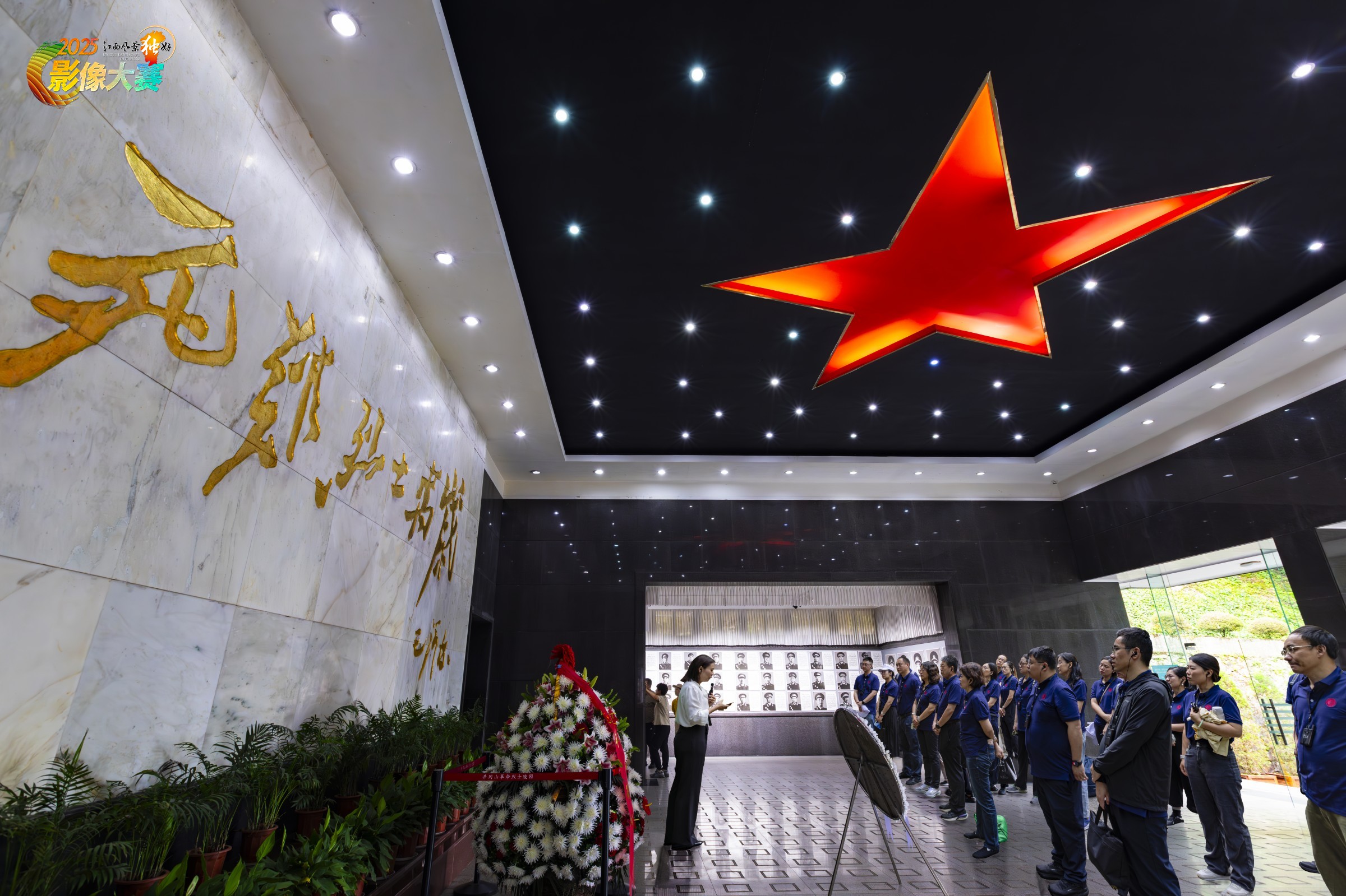 井冈山革命烈士纪念馆中,参观的群众接受革命传统和爱国主义教育。
