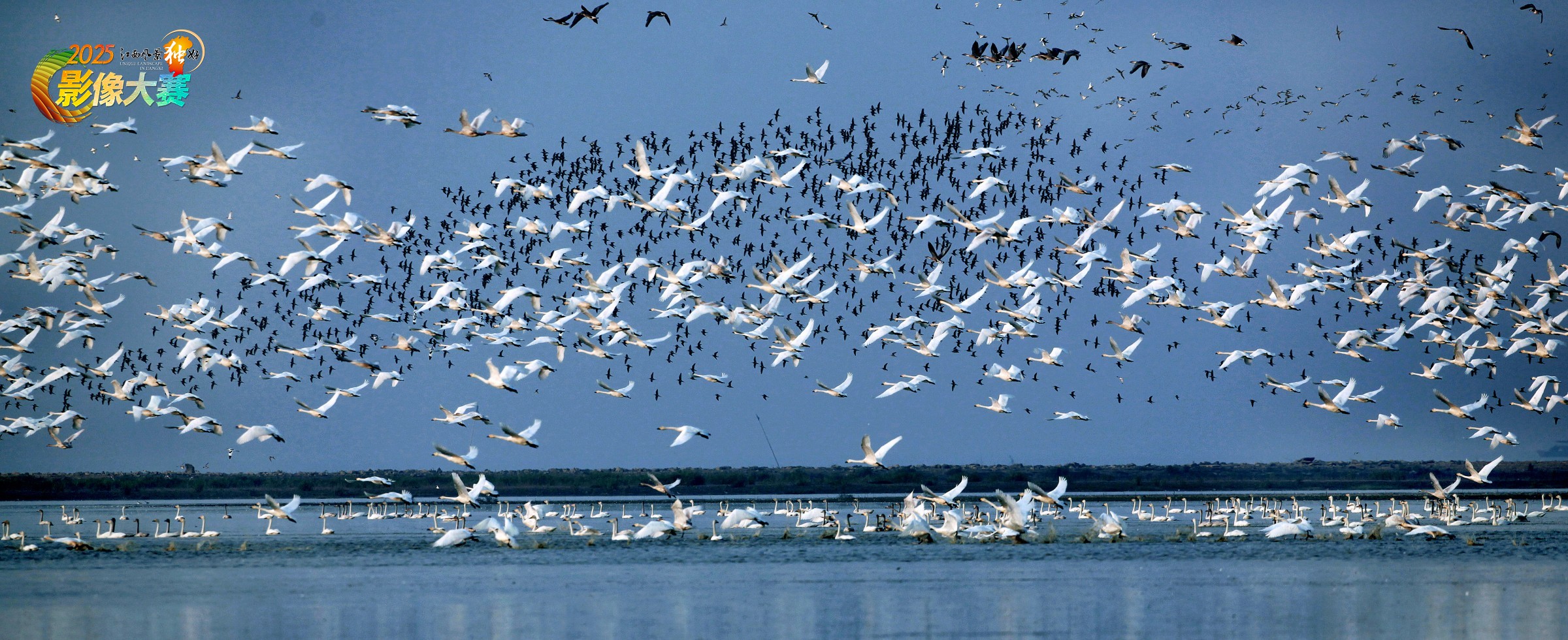 每逢年年的11月初,成批的天鹅从西北利亚大迁徙到鄱阳湖越冬。