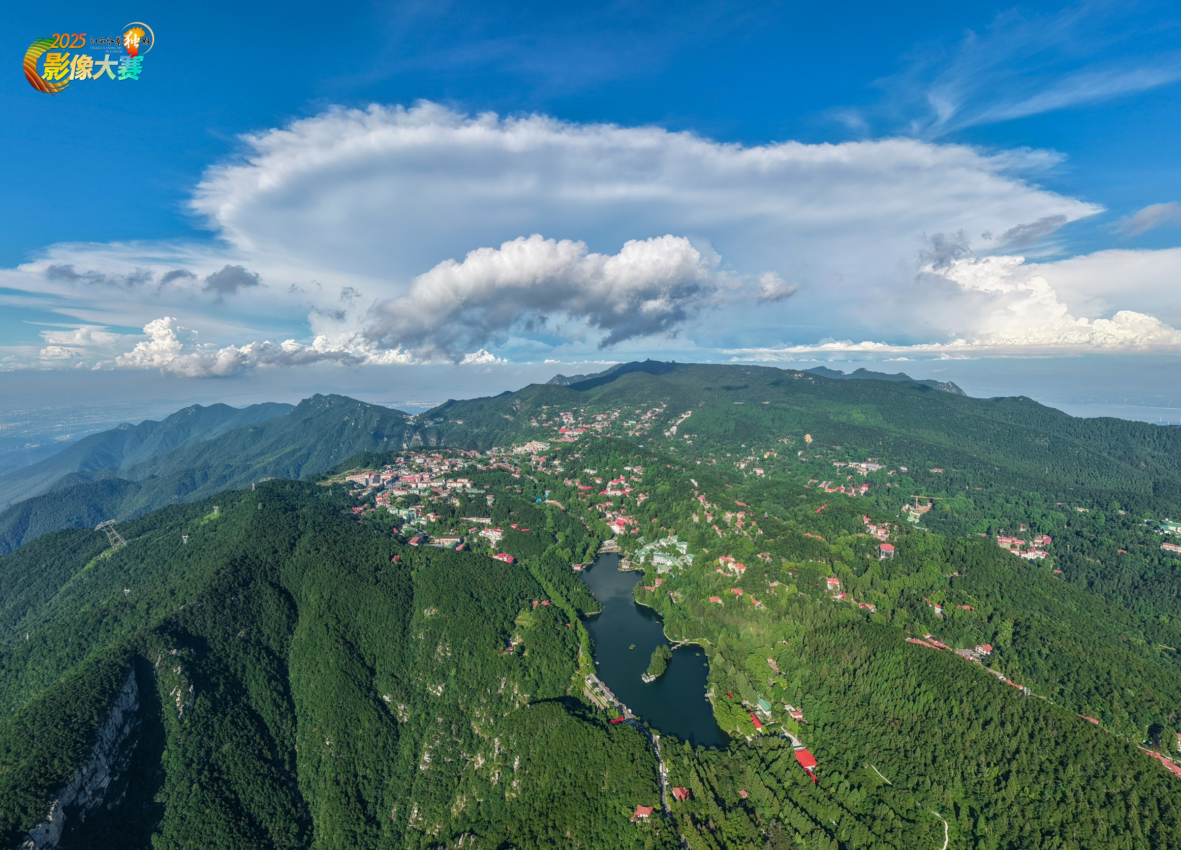 台风外围云系对流在顶部展开成巨大的云砧,犹如庐山顶上的一顶帽子