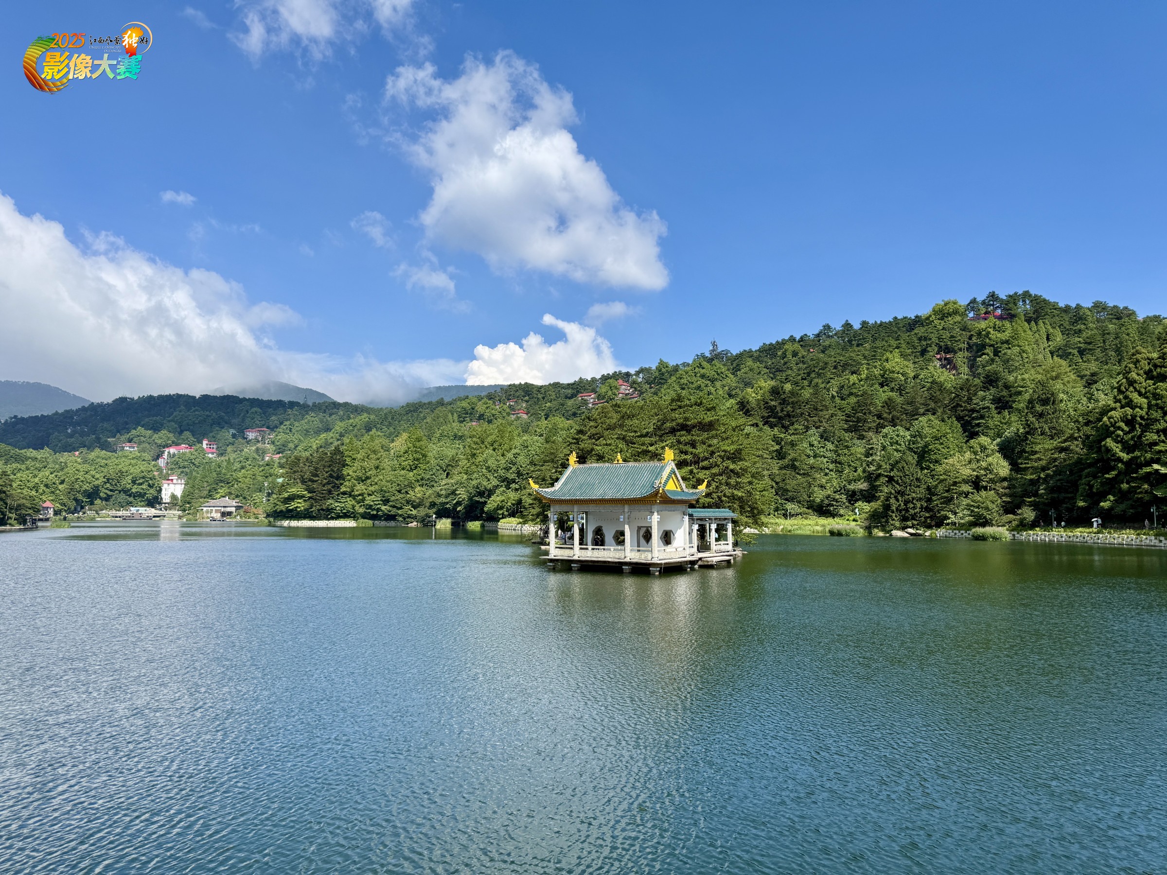 如琴湖宛如一把镶嵌在庐山的小提琴,湖水清澈,波光粼粼,四周群山环抱,与湖畔的花径公园相映成趣,如诗如画。