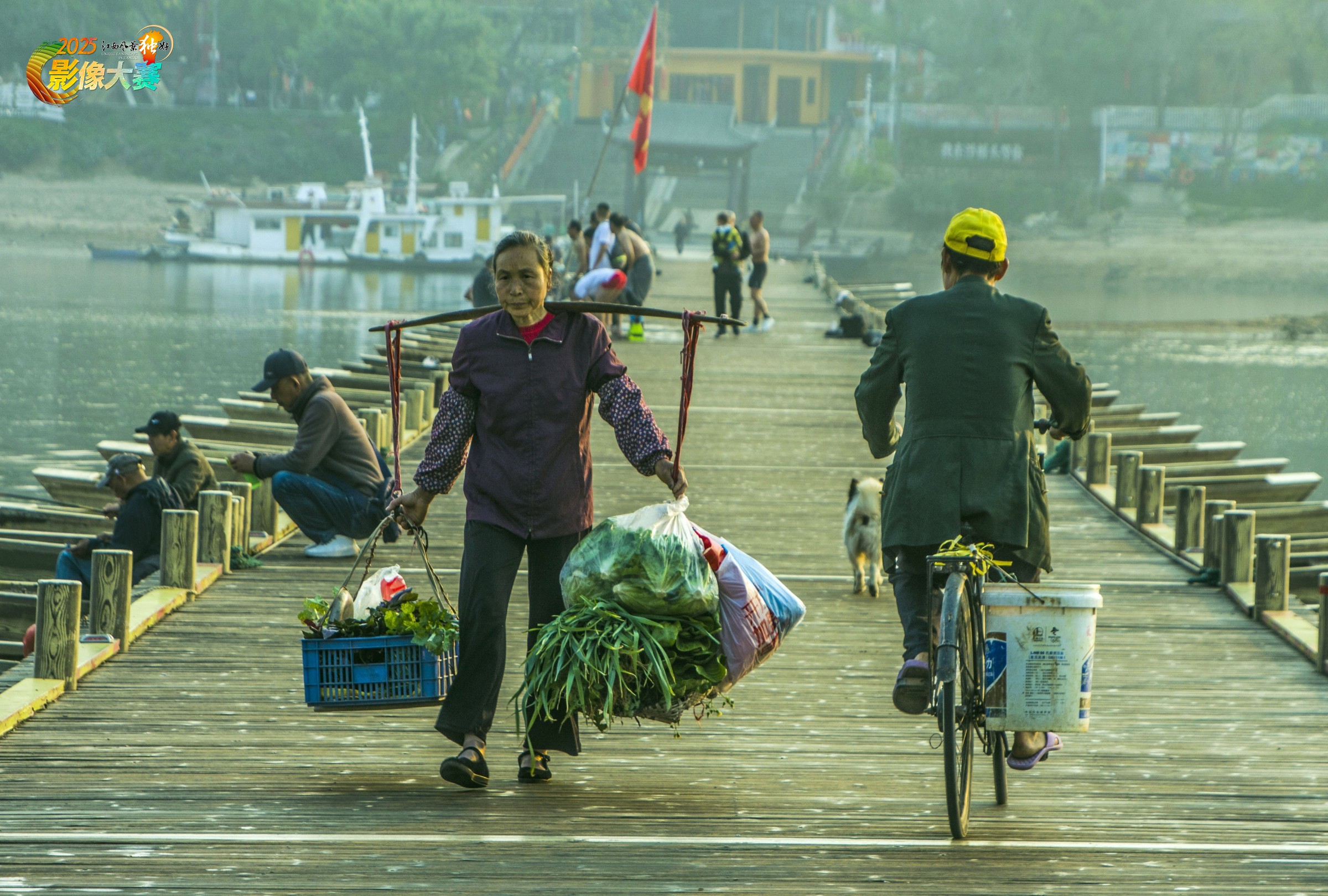 2025年3月25日赣州市。赣州市贡水上的浮桥,早晨这里人头攒动,熙熙攘攘,当地百姓都在为了生活,努力的忙碌,依靠自己的劳动,获得美好的生活。