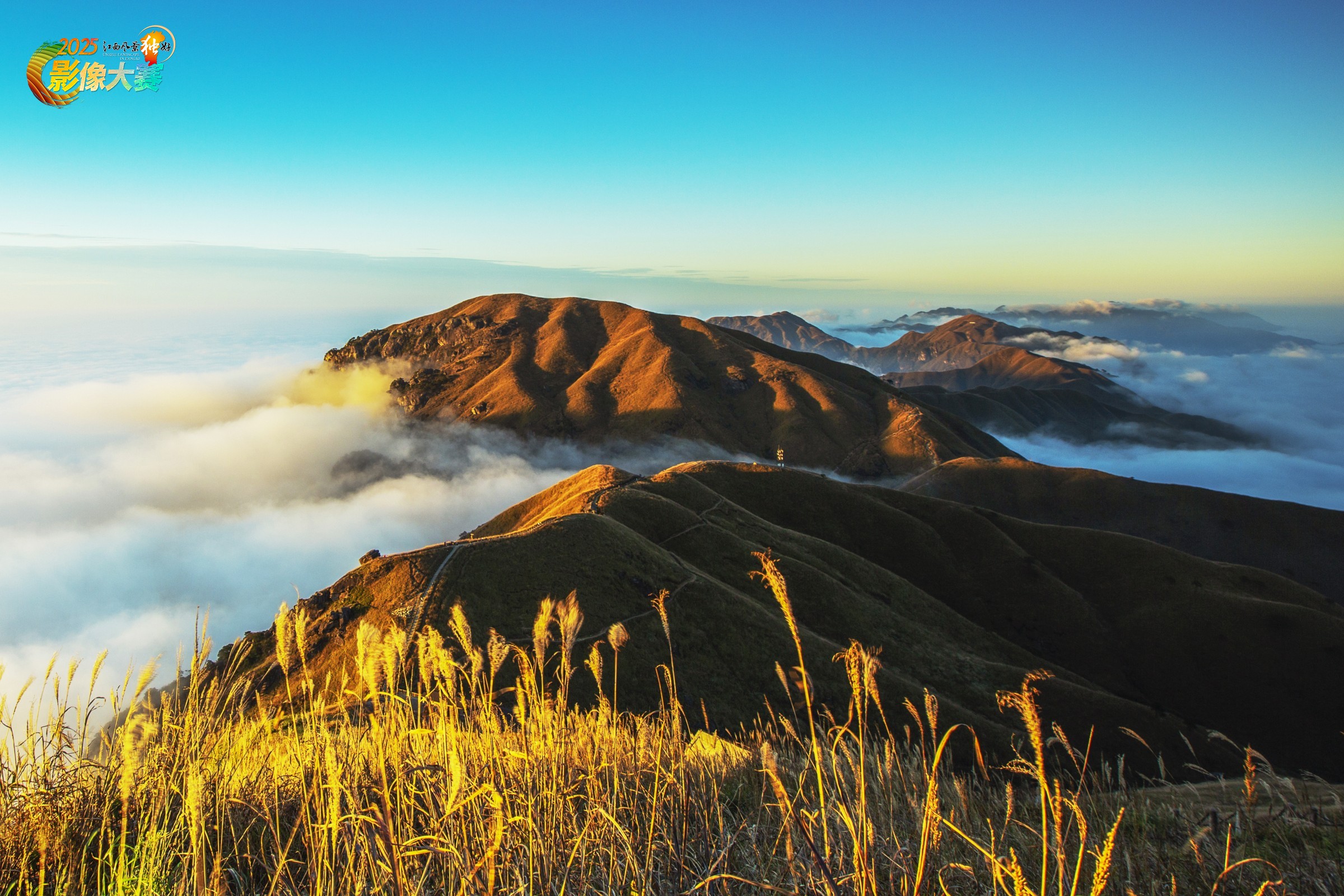 金辉染草甸,云海绕山间,秋日武功山一派苍茫与诗意。