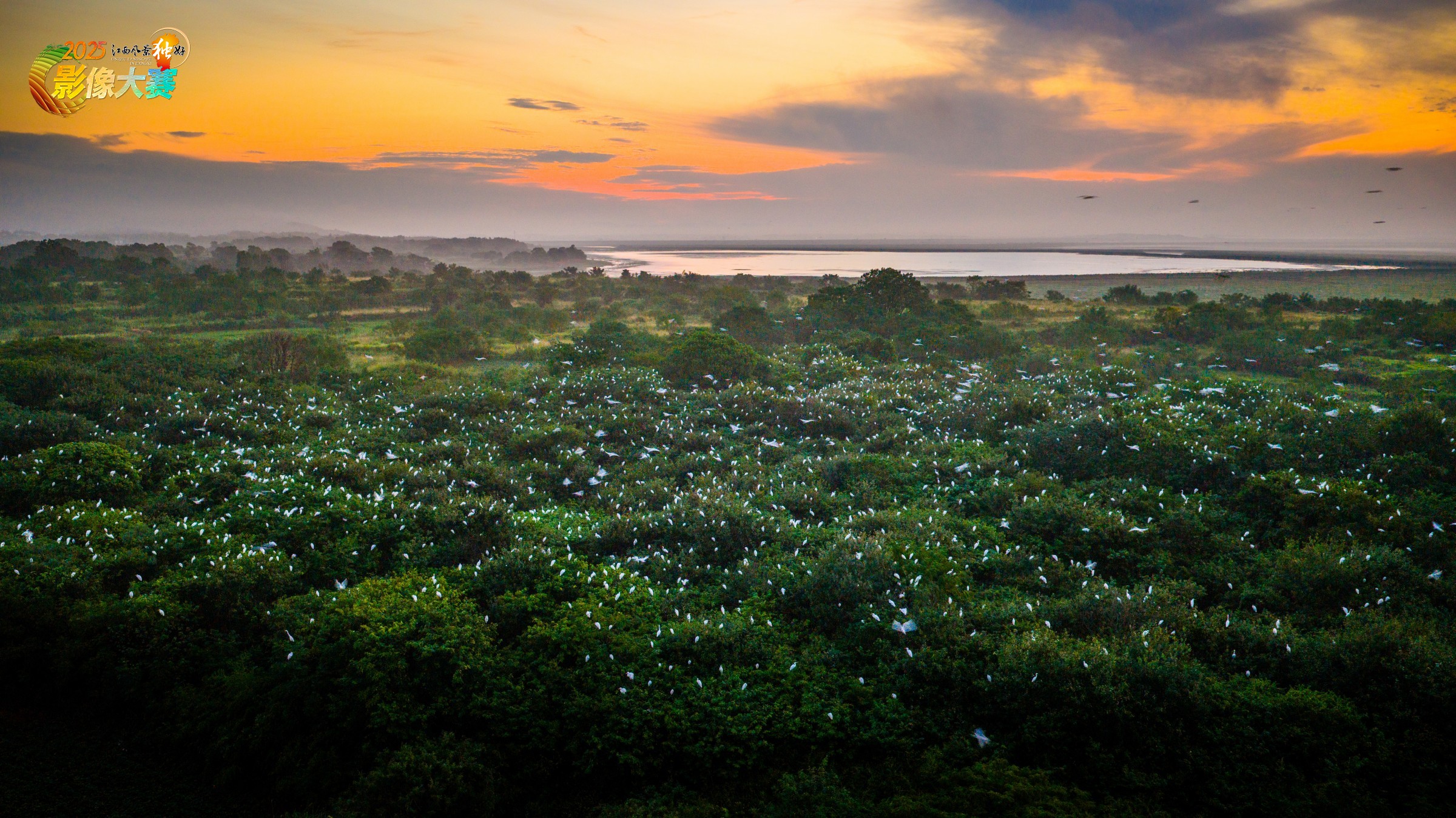 进入9月,鄱阳湖水位下降,数十万白鹭云集,场面十分壮观。