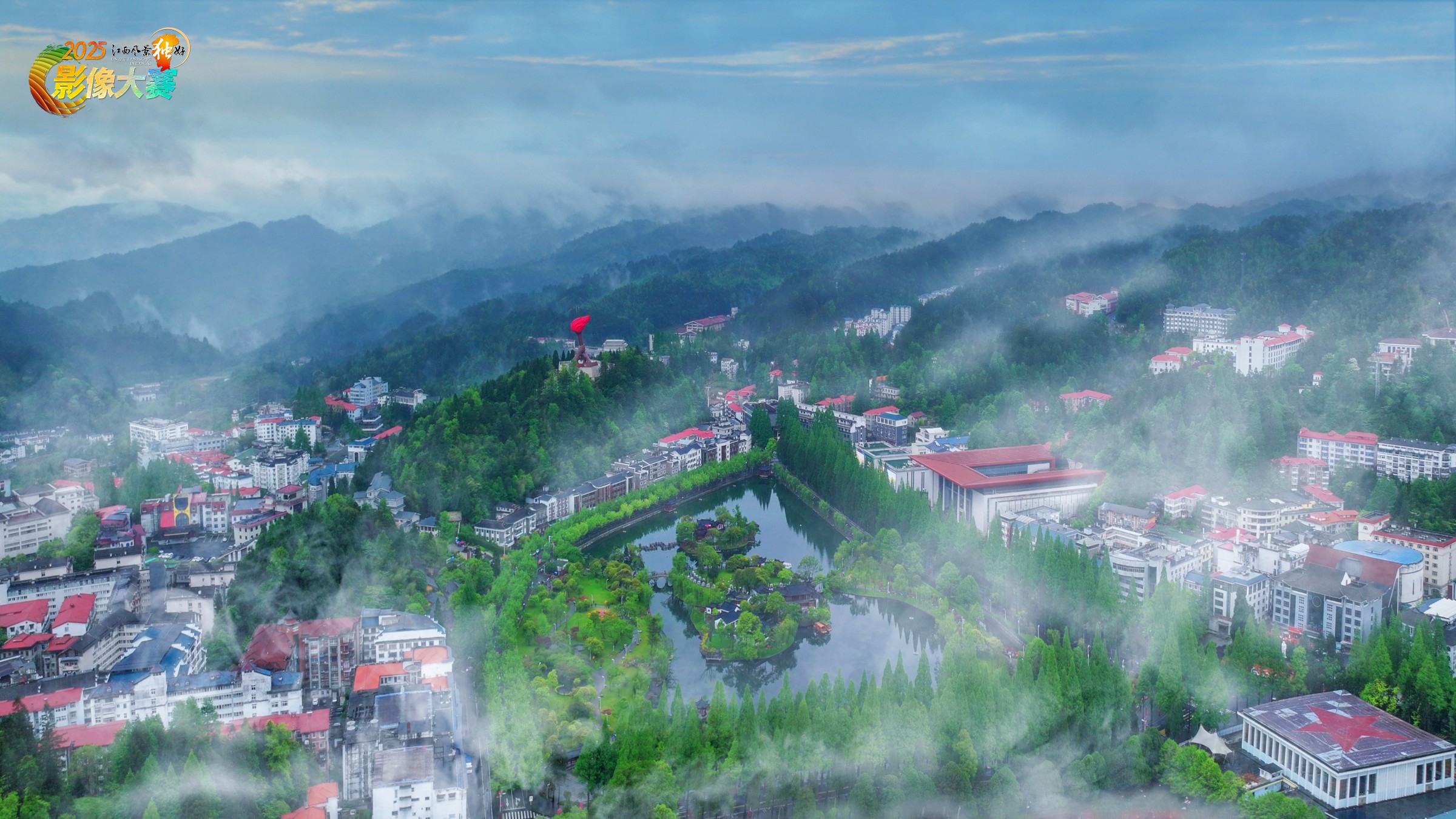 轻纱般的云雾笼罩在茨坪上空,春色迷人。