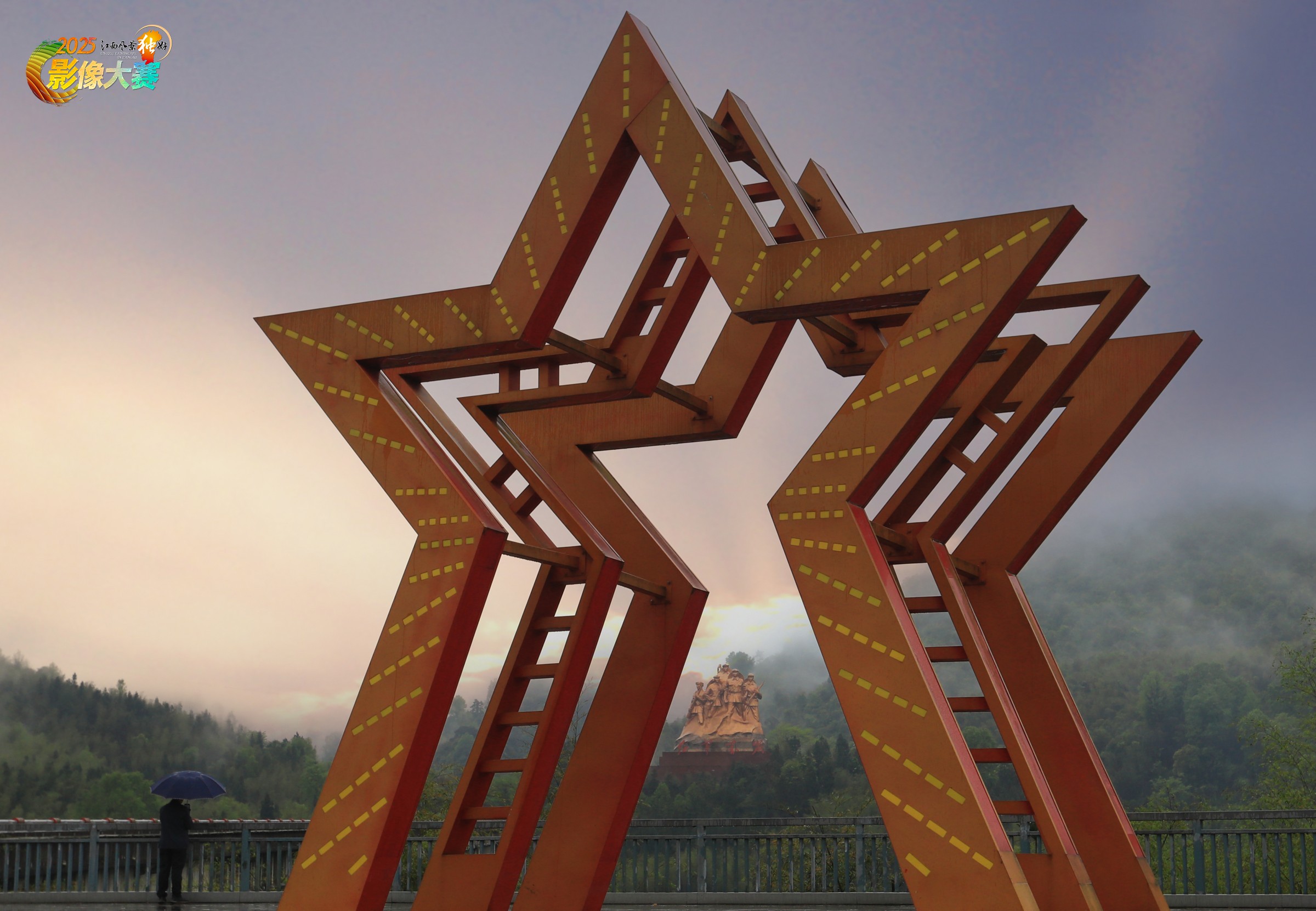 象征着信仰力量的闪闪红星和红军雕塑遥相呼应。