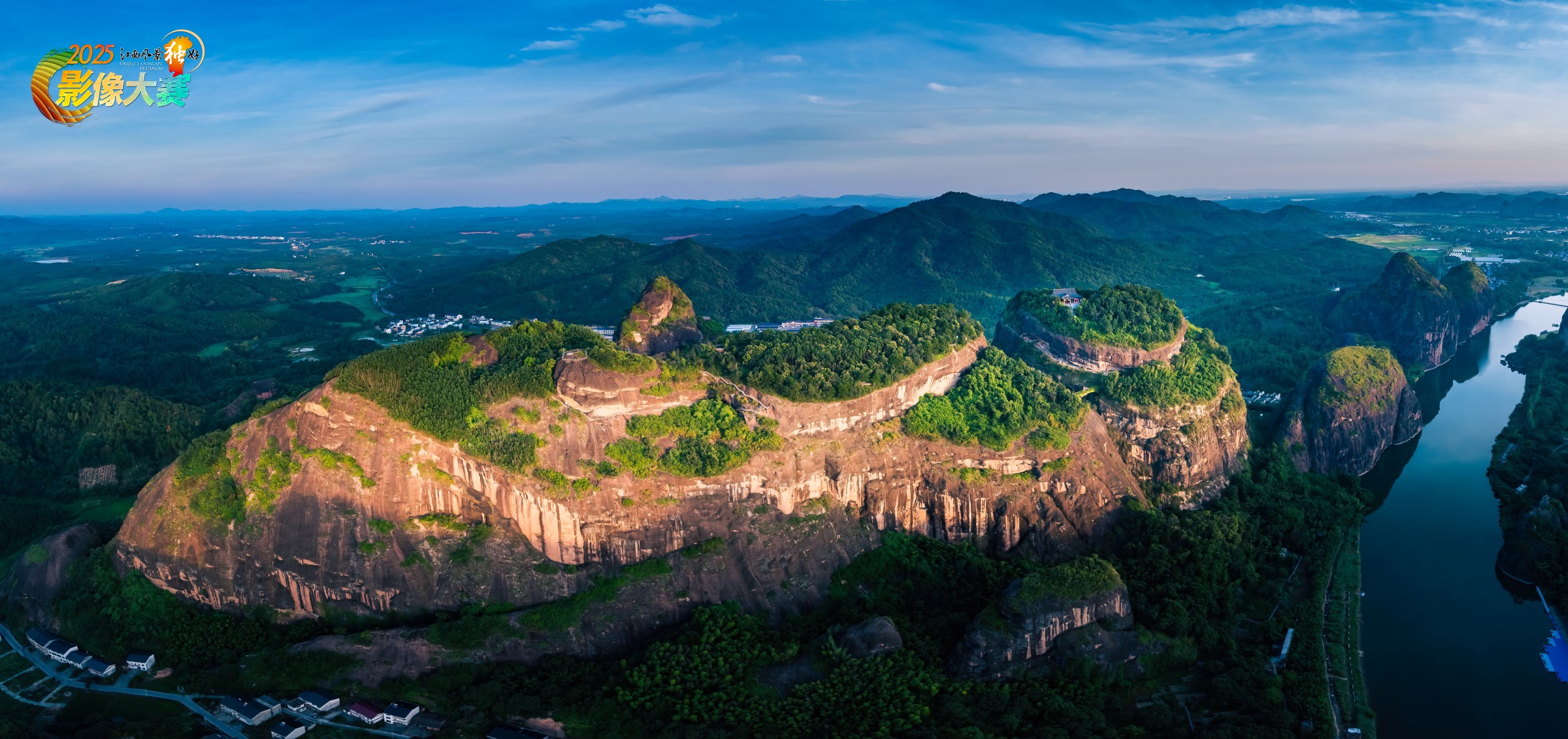 龙虎山航拍作品,丹崖碧水间丹霞地貌雄奇瑰丽,绿树覆崖,远山如黛