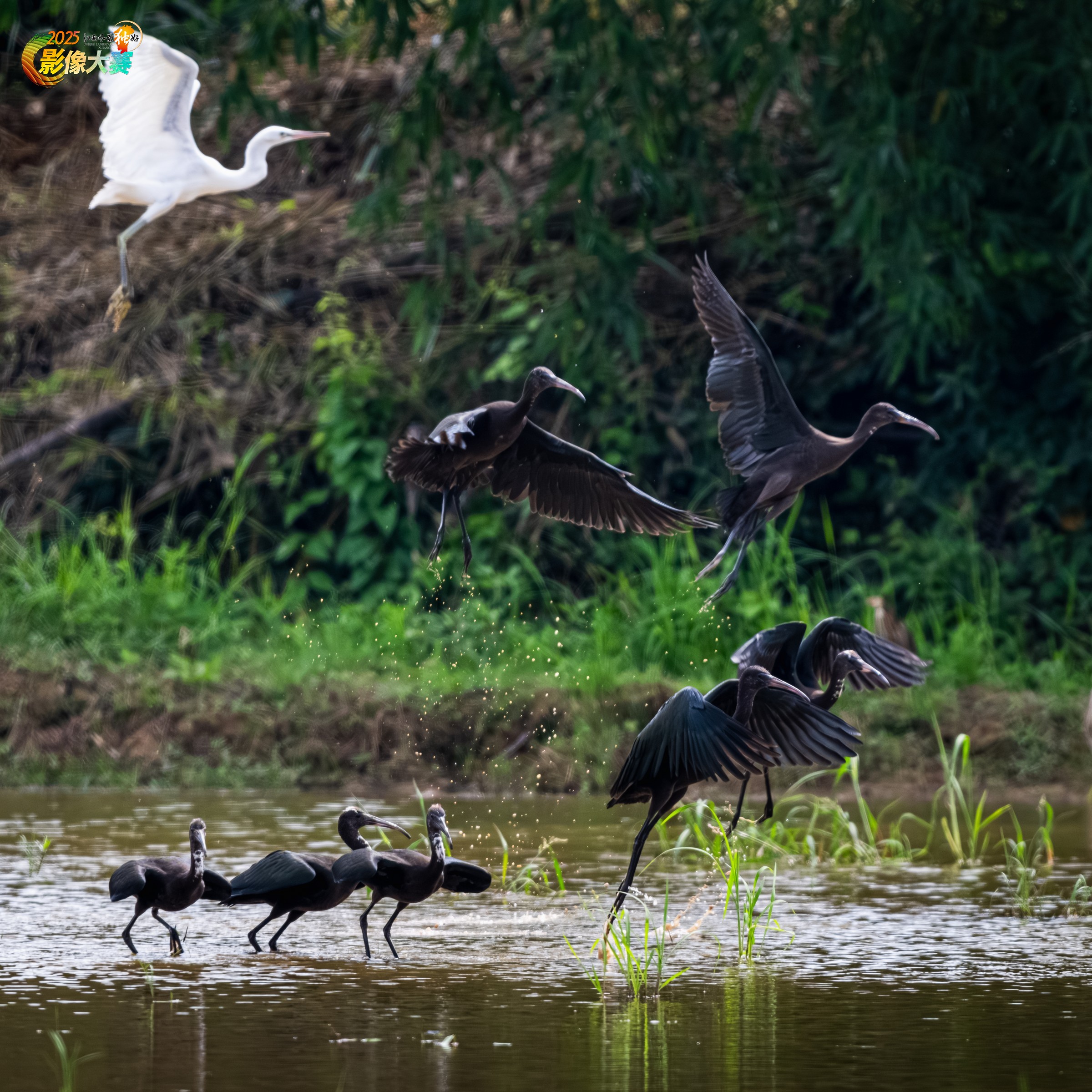 2025年6月27日摄于江西省永修大垅水库首次彩鹮定居繁衍成功育雏幼雏在湿地起舞试羽