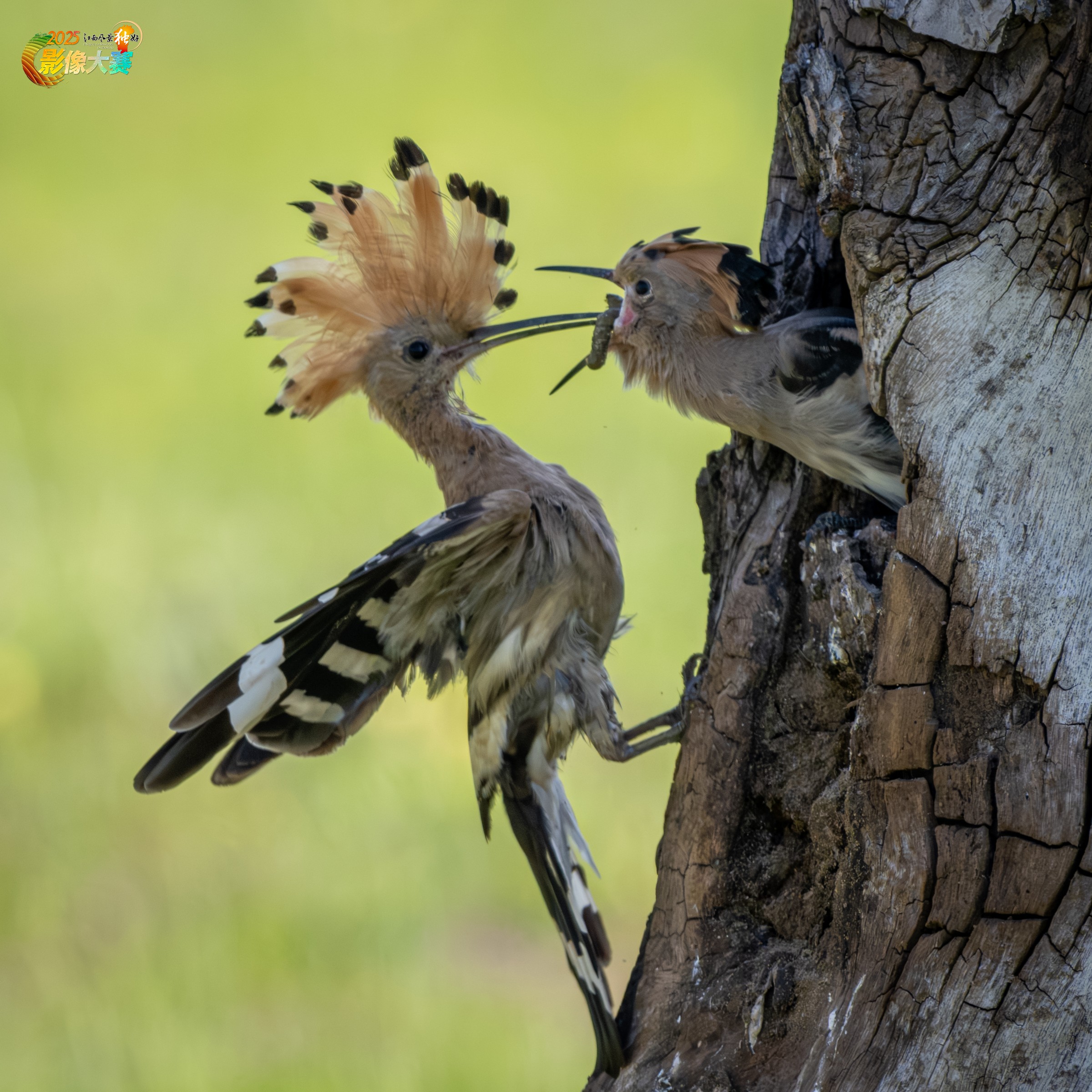 2025年5月2日摄于江西省丰城厚田戴胜鸟在酷暑时节不畏艰辛育雏鸟