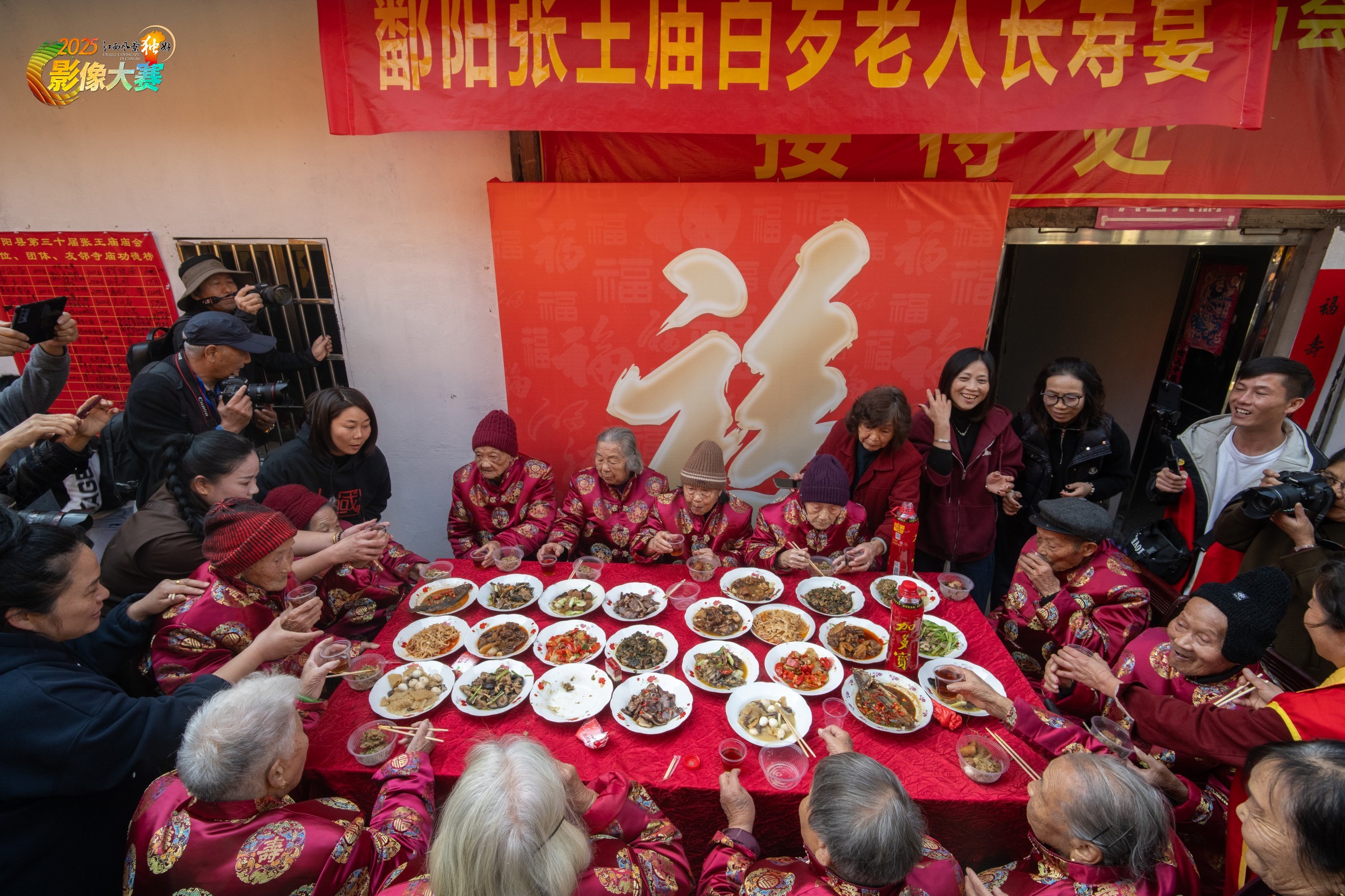 摄于2024年11月19日江西省鄱阳县张王庙会百岁老人宴现场