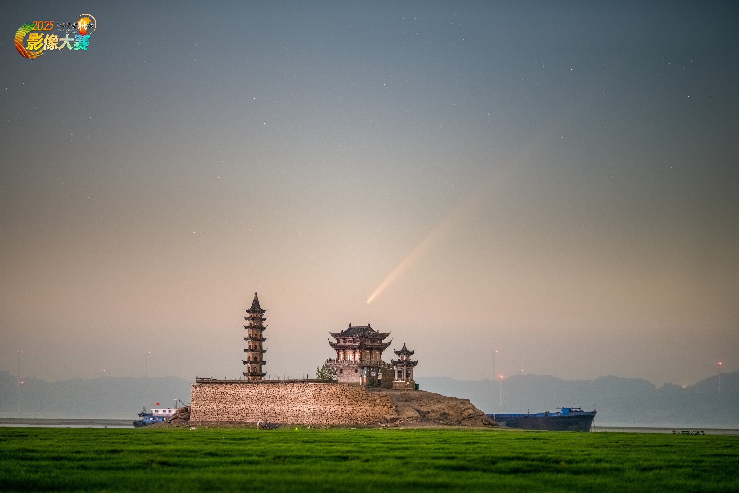落星墩,位于江西省九江市庐山市(原星子县)鄱阳湖中心,据郦道元《水经注》记载,传为星坠鄱阳湖所化。2024年9月29日凌晨,紫金山阿特拉斯彗星如约而至,从鄱阳湖中的落星墩东方升起。画面仿佛让古老的传说‘活’了过来:传说中‘坠星’之地,今夜迎来了一颗真正的天外访客。长长的彗尾,正如一颗星辰划破夜空,将千年的想象化为眼前的奇观。这不仅是天文现象的记录,更是对‘江西风景独好’的极致诠释——这里的风景,既有湖岛的千年文脉,也有星空的浪漫馈赠。