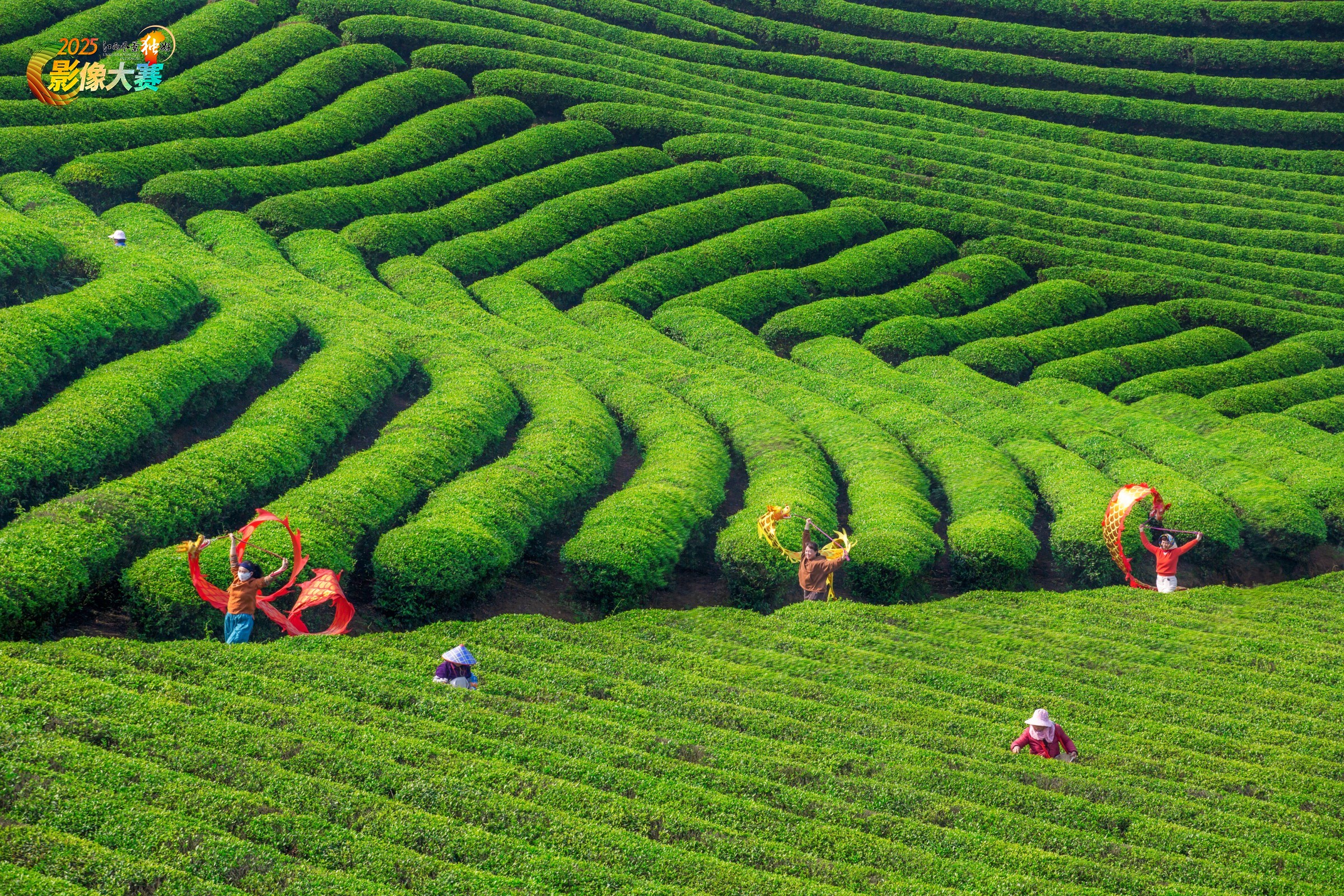 2022年4月20日,拍摄于江西省上高县新界埠镇五星茶场。新界埠镇坚持茶业兴镇,着力打造茶旅田园综合体,吸引游客前来游玩、采摘、手工炒茶及体验传统茶艺,带动当地村民致富。