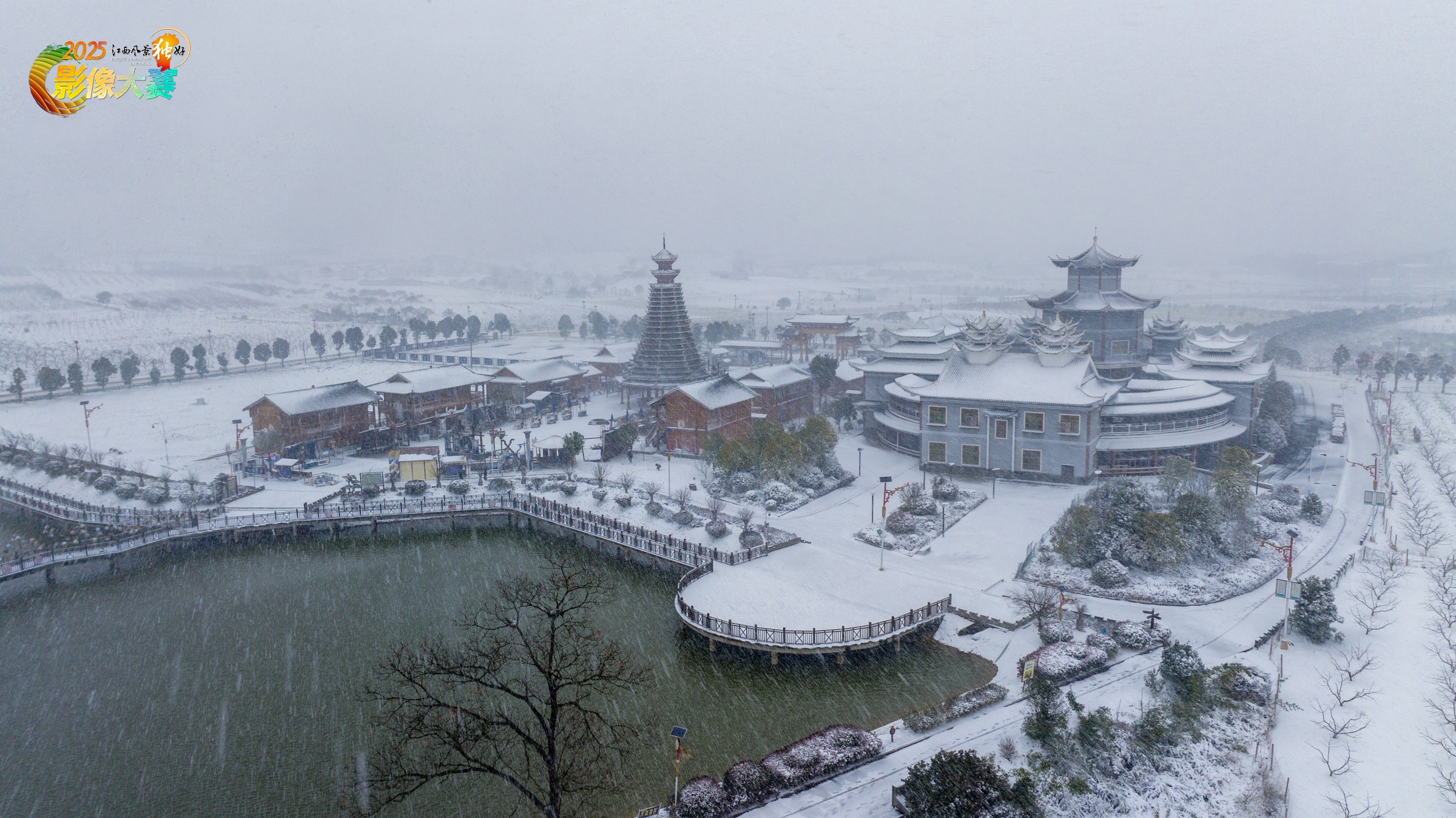 峡江金坪风情园一场大雪把鼓楼装扮得银装素裹