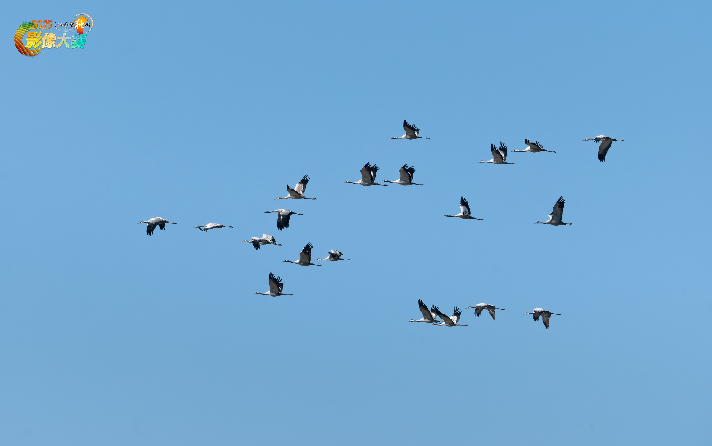2023年12月,南昌县五星农场的上空,几十只灰鹤从天空飞过。