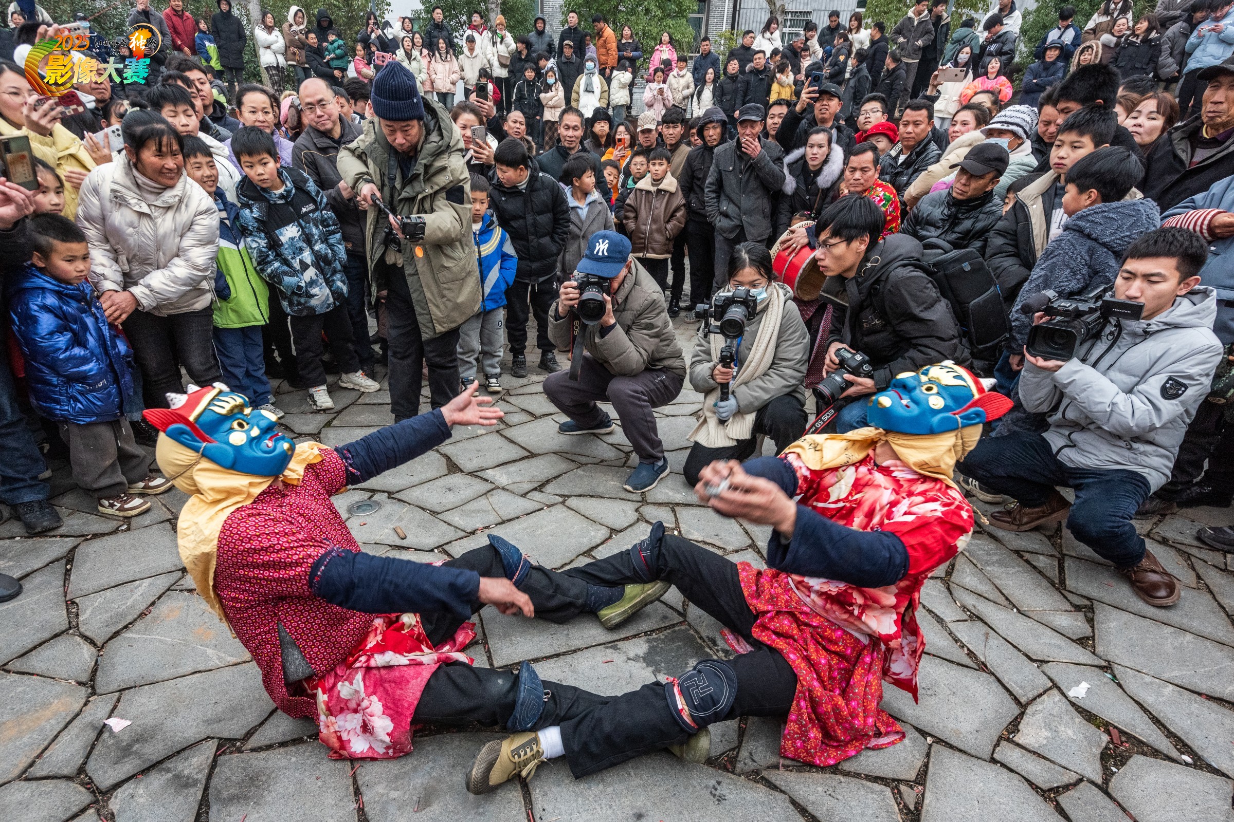 农历一月十六日,石邮村迎来傩舞表演的最后环节“圆傩”,观傩的人们从四面八方络绎不绝地前来,亲身体验这一国家级“非遗文化”的独特魅力。傩舞也叫“跳傩”,其自古寓意为全村驱鬼逐疫,祈祷新的一年平安幸福。2024年2月25日拍摄于江西省抚州市三溪乡南丰县石邮村。