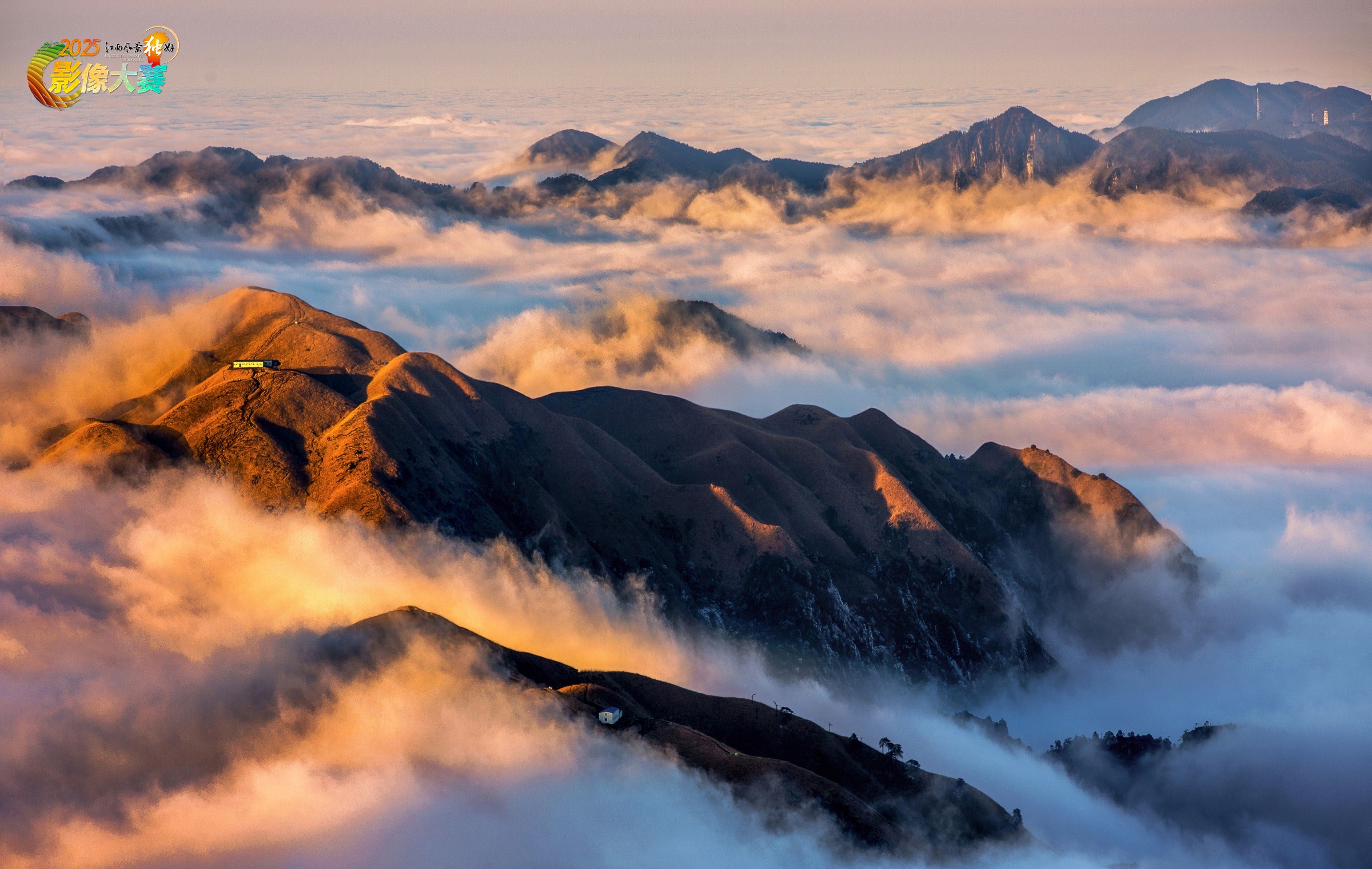 大雪过后,夕阳撒落在武功山峰金灿灿……