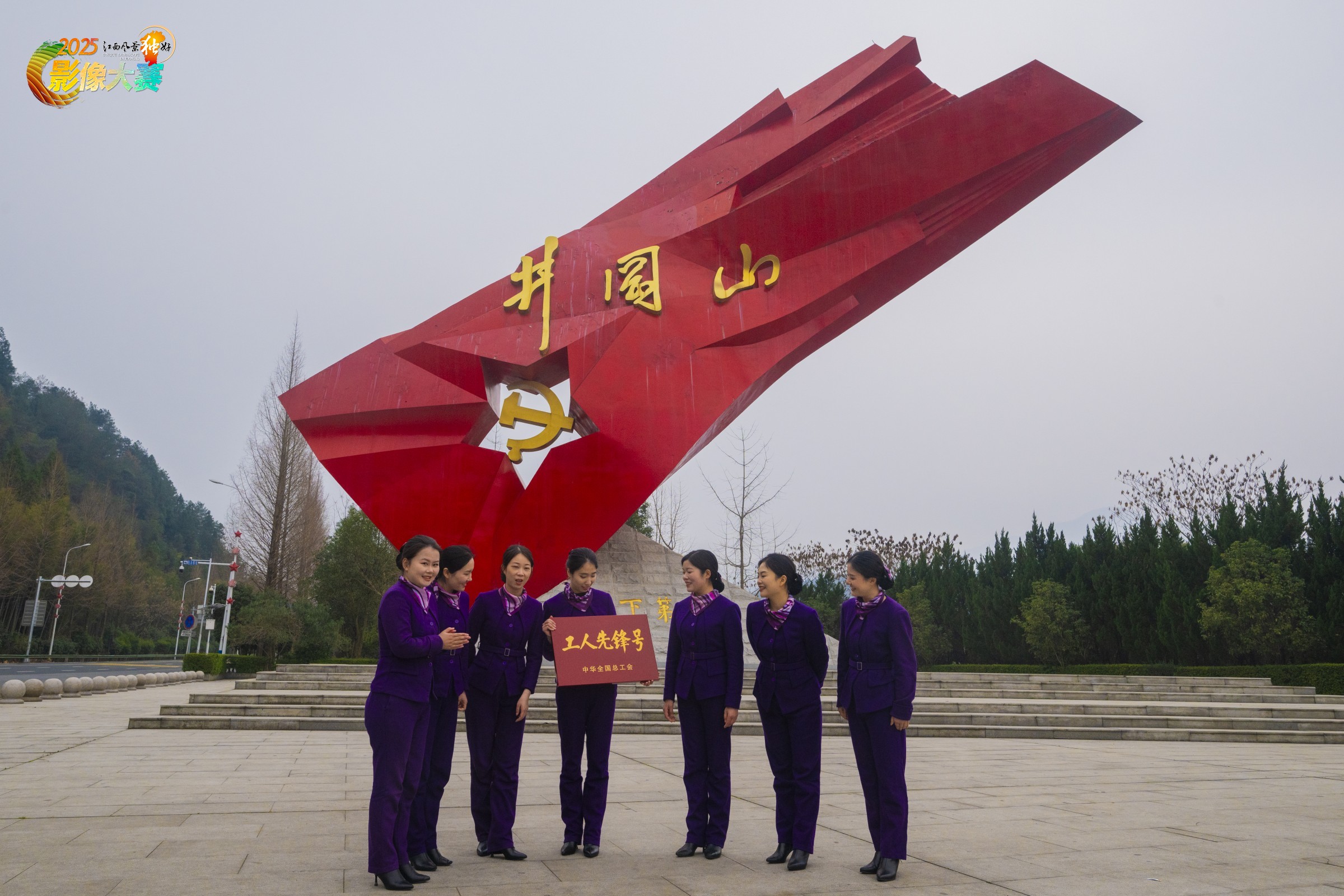 作品拍摄于井冈山红旗广场。井泰高速井冈山收费站映山红班组是全国高速公路先进班组,也是全国总工会授予的工人先锋号班组。这是小组党员们在红旗广场开展党小组活动。