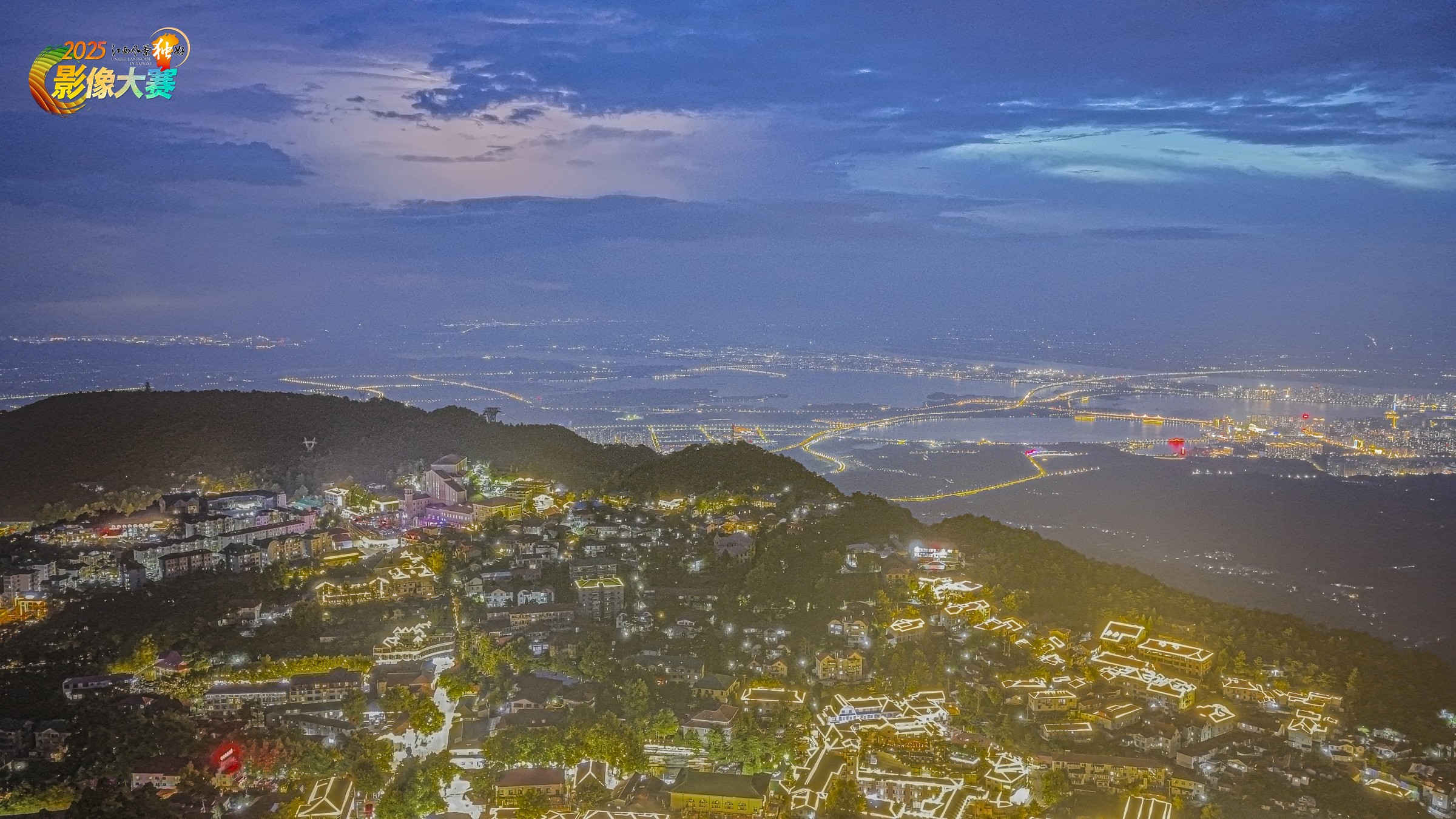 作品拍摄江西省庐山牯岭。九江是历史文化名城,也是山水名城。夜空下,庐山与九江城,天上人间不夜天。
