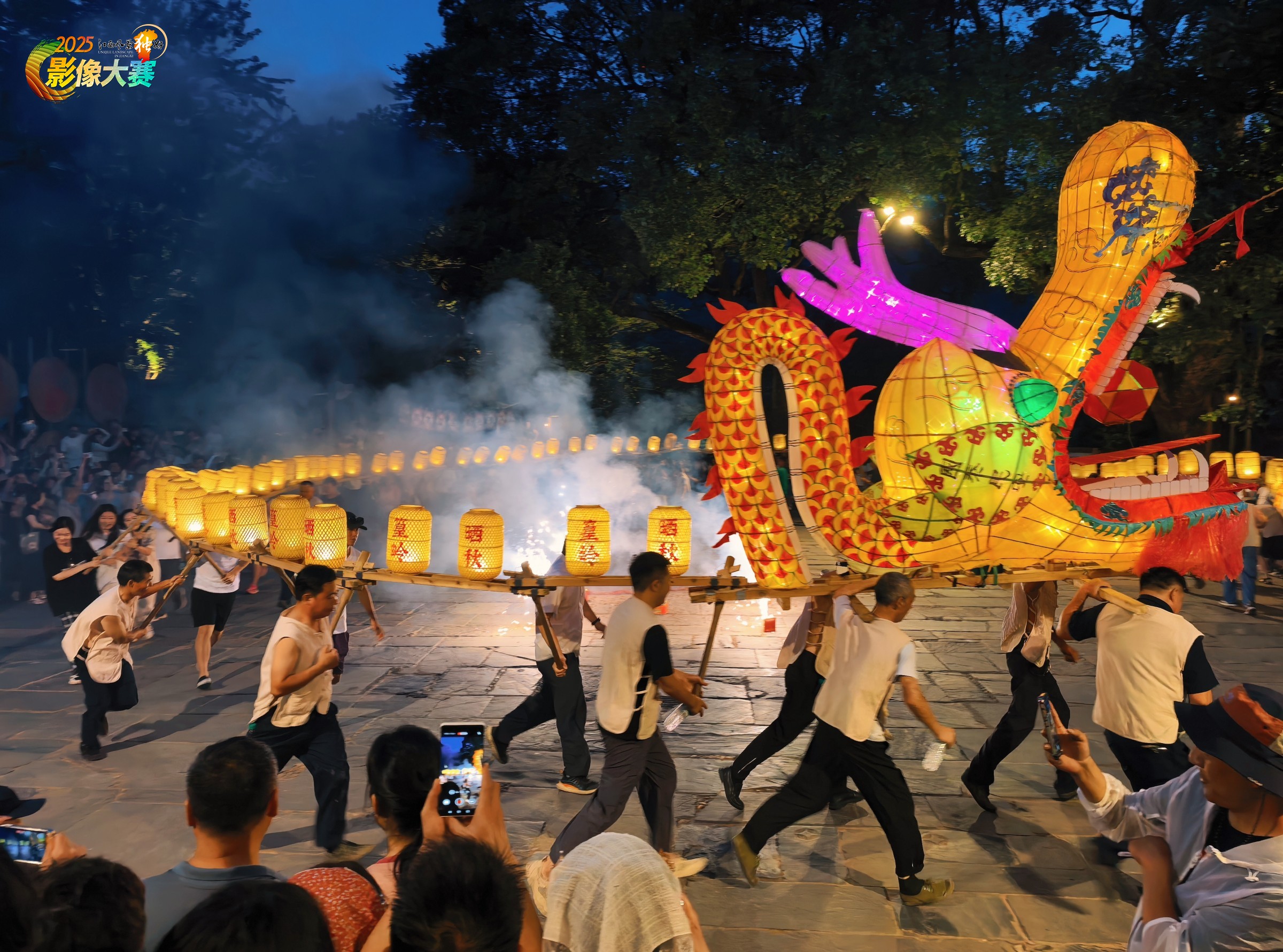龙灯蜿蜒游走于古村巷陌,灯火流转映亮梯田与黛瓦。非遗匠心焕彩,民俗盛宴点燃夜色,如星河坠落人间,演绎传统与现代的璀璨交融,喜庆溢满山间。