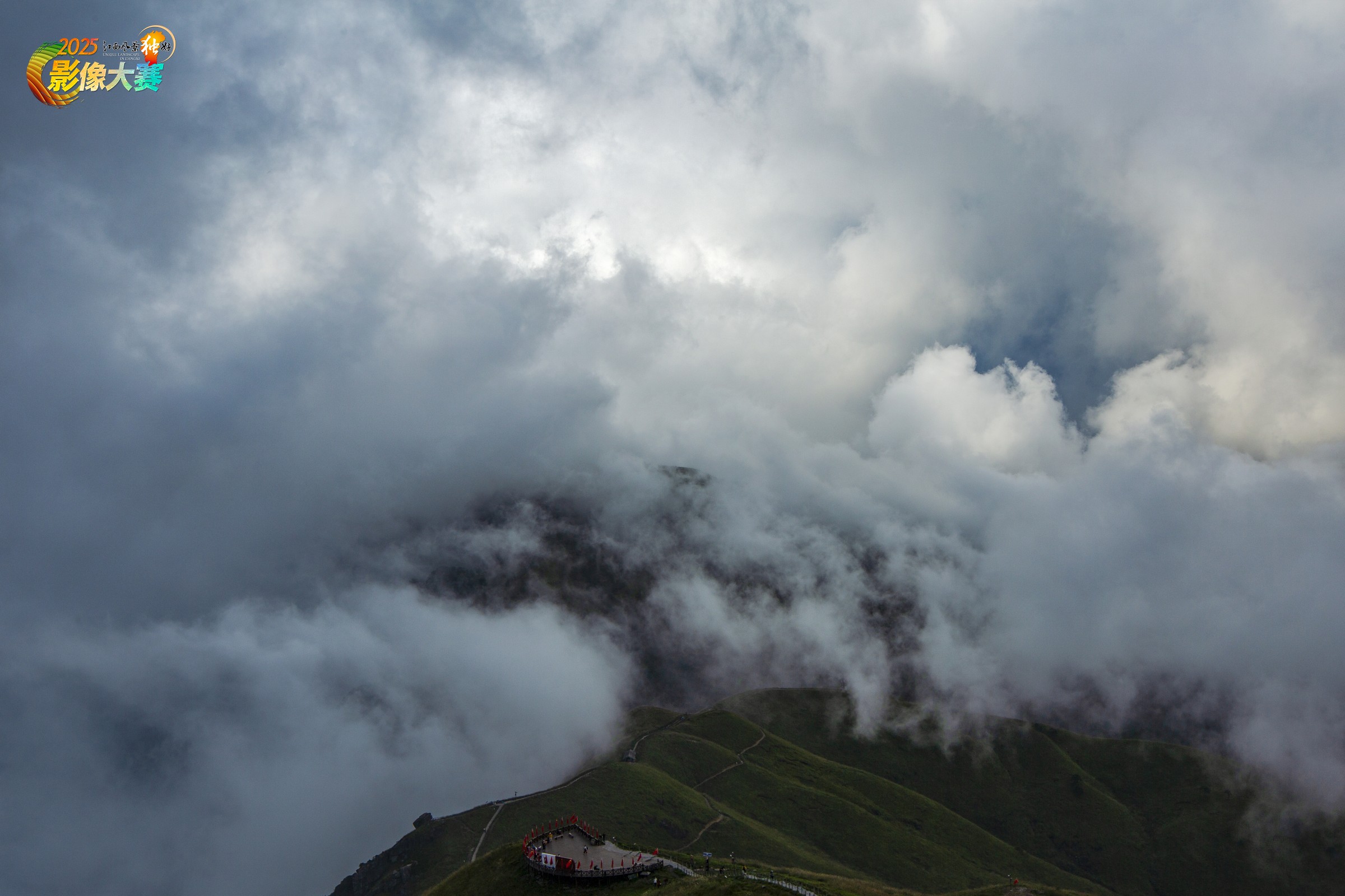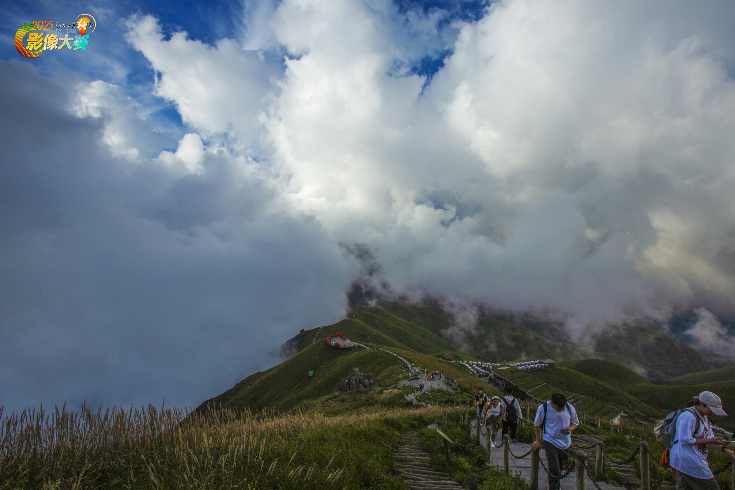 武功山以壮丽的高山草甸与浩瀚云海奇观闻名天下,被誉为“天上草原”和"户外天堂"。2025年9月26日至27日,作者在武功山采风,恰遇金顶突现云瀑盛景 ——棉絮状云团自天际堆叠,如瀑流般漫过高山草甸,裹住山脊又漏出天光,步道行人成了云海里的星点,衬得江西第一高峰既有“天地壮阔”的大气,又藏“云卷云舒”的灵秀。这是江西风景独有的舒展与磅礴,也是武功山写给天地的散文诗。