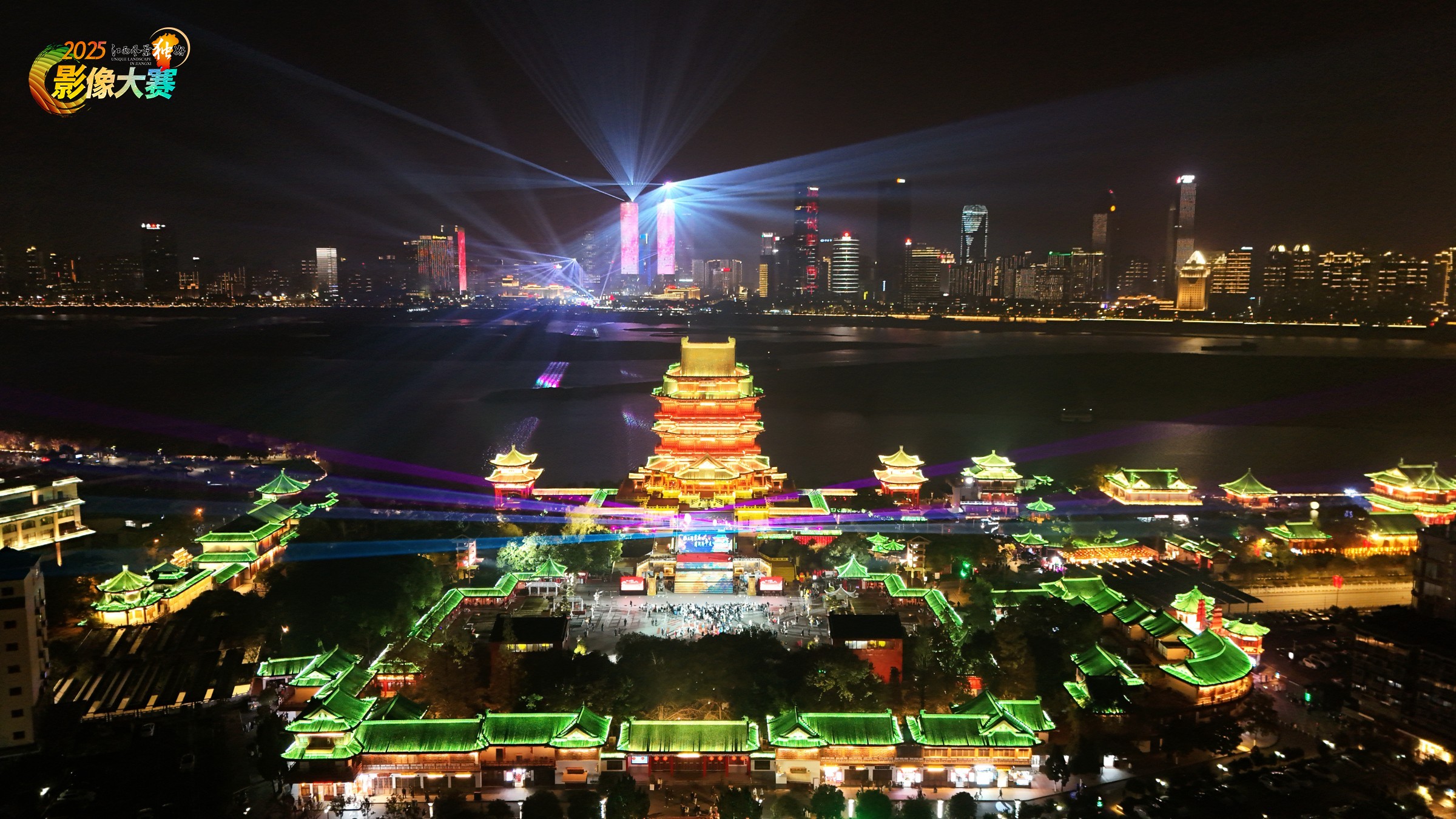 作品《流光溢彩》拍摄于南昌滕王阁,2023年12月31日跨年夜,无人机镜头掠过滕王阁的璀璨飞檐,将千年古阁的鎏金光影洒向赣江。江面倒影流转间,对岸双子塔与摩天楼群如水晶丛林骤然绽放,现代灯光在夜空中挥洒出科幻诗篇。一江两岸,唐风宋韵与都市霓虹隔空相望,在除夕夜完成了一场跨越时空的灯火对话,见证着洪城古今交汇的辉煌瞬间。