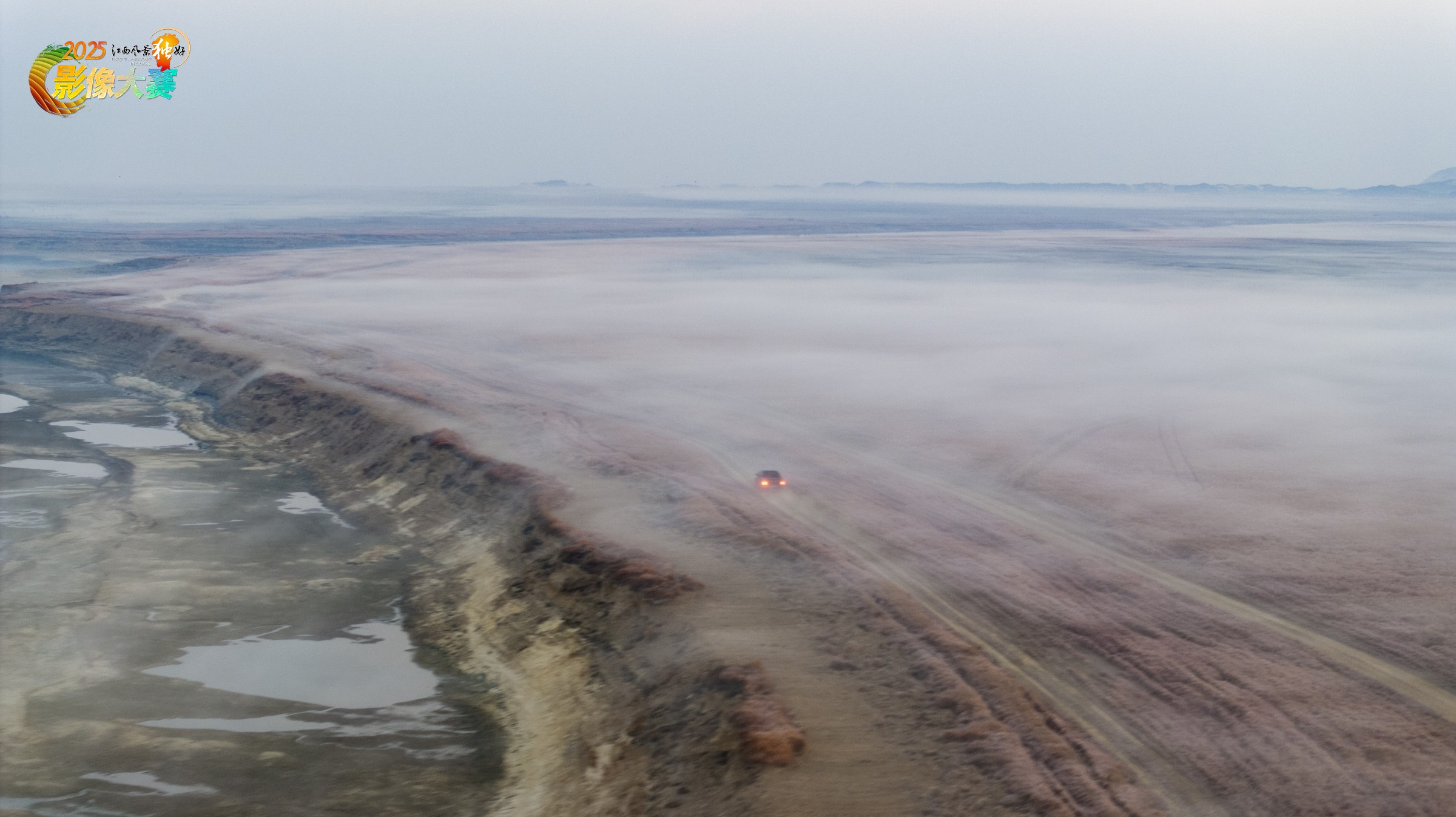 初冬的鄱阳湖,秋色尚未完全褪祛,晨雾洒在大地上,巡逻的车辆经过加上雾灯的穿透力,天地间唯我独行
