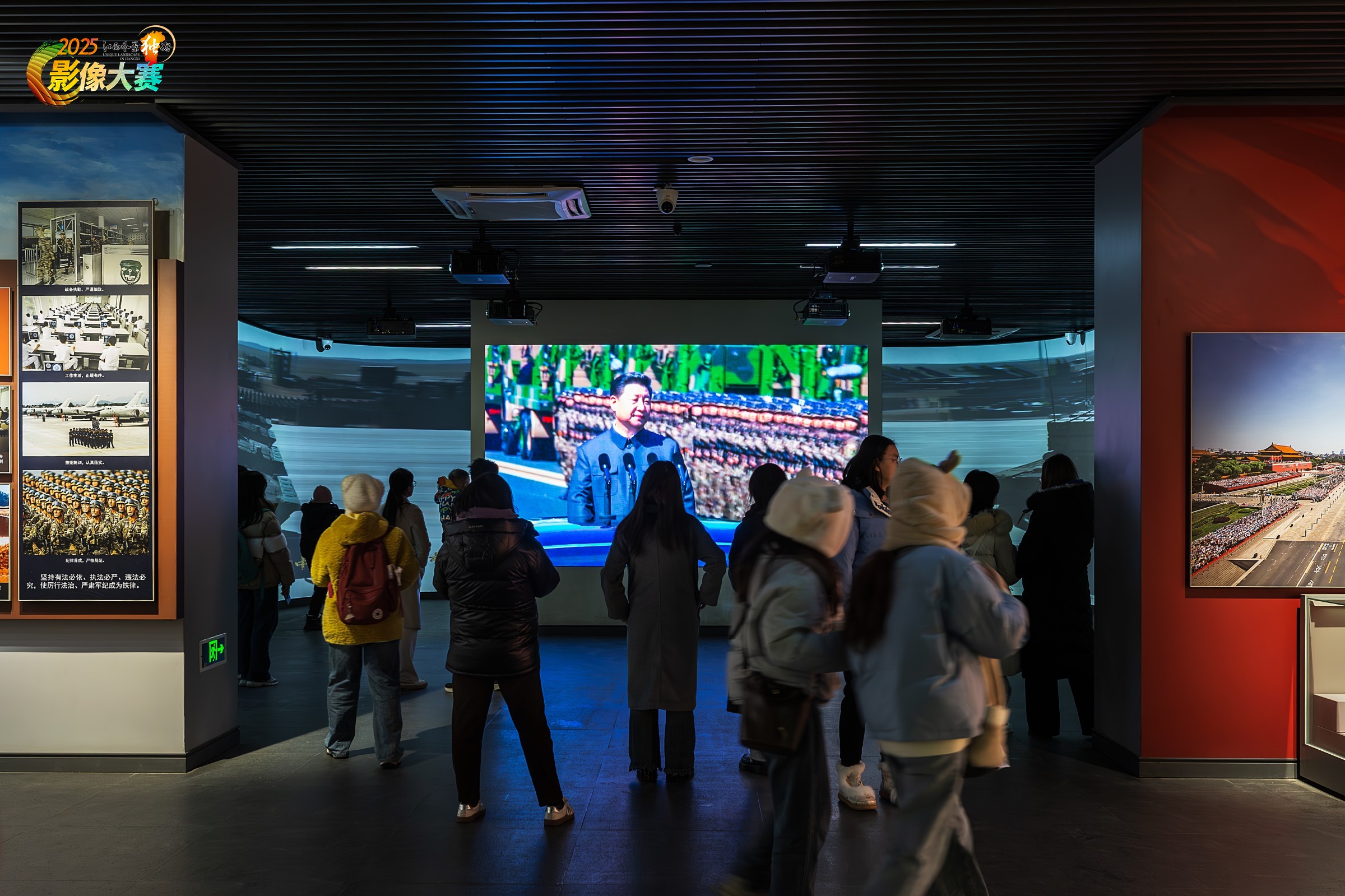 组照5:游客在参观过程中观看大屏幕播放的高清纪录片