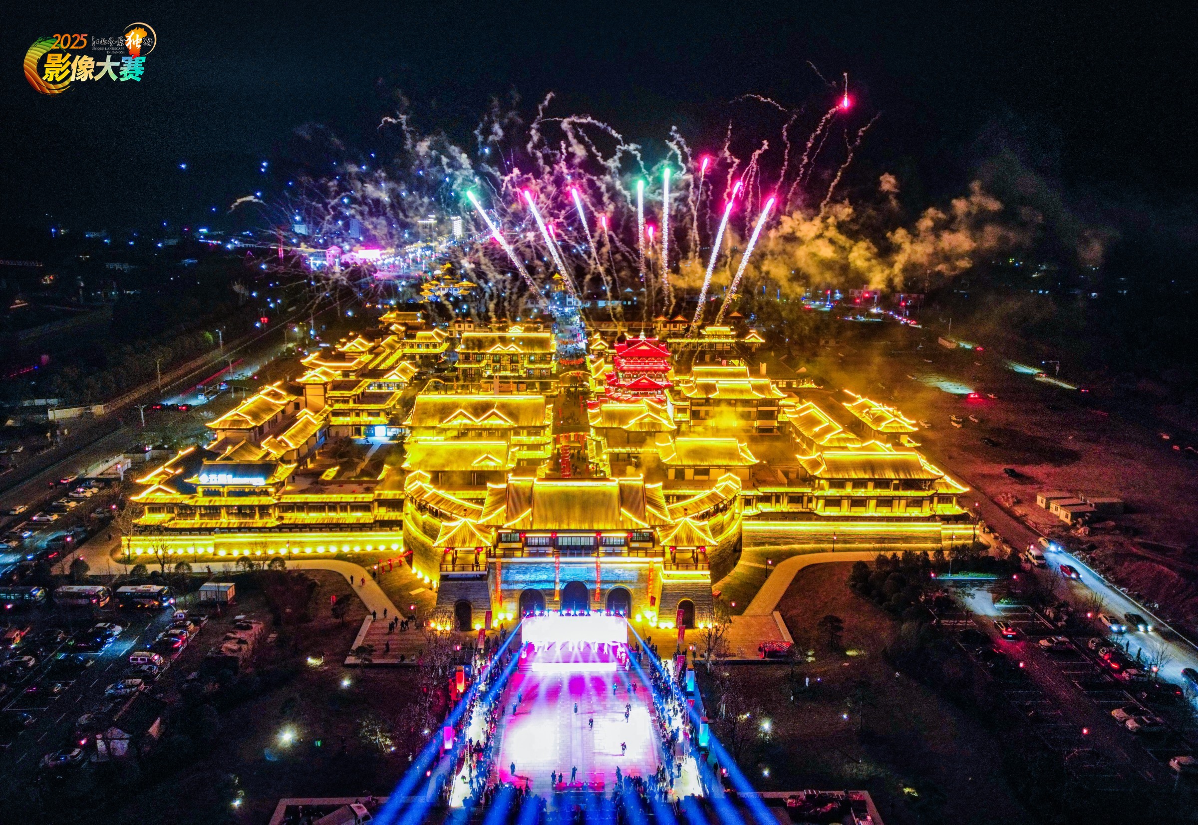 东林莲华境烟火盛景:龙舞古境,烟花耀元宵。