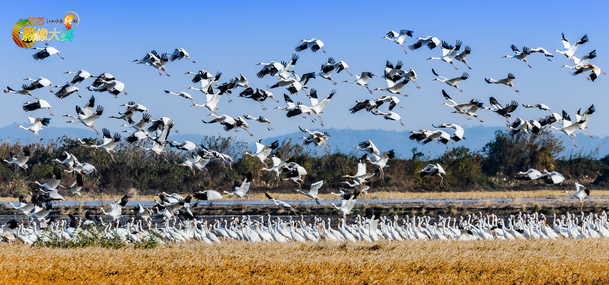 2024年12月14日万羽白鹤飞归余干康山湖区,气势恢宏